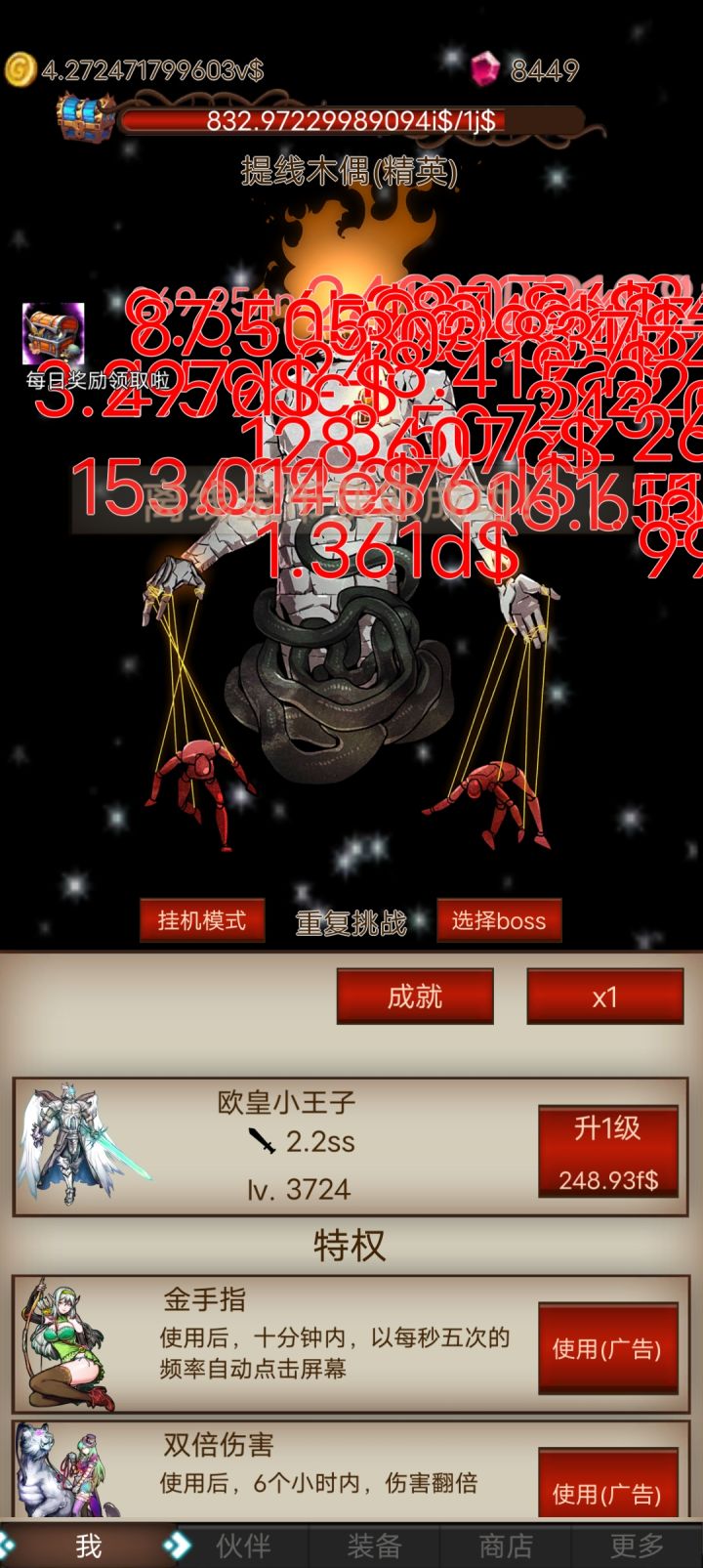 这游戏真的还蛮有意思的,一开始随便点进来的,我玩游戏比较挑,这游戏不要钱还很上头,可以挂机,比较爽,装备可以刷。目前才世界3 建议的话挂机背包上限100太少了,睡一觉就满了看广告有点太频繁了,钻石不够用,或者能不能出一个别的途径获取钻石。希望能出更多玩法吧