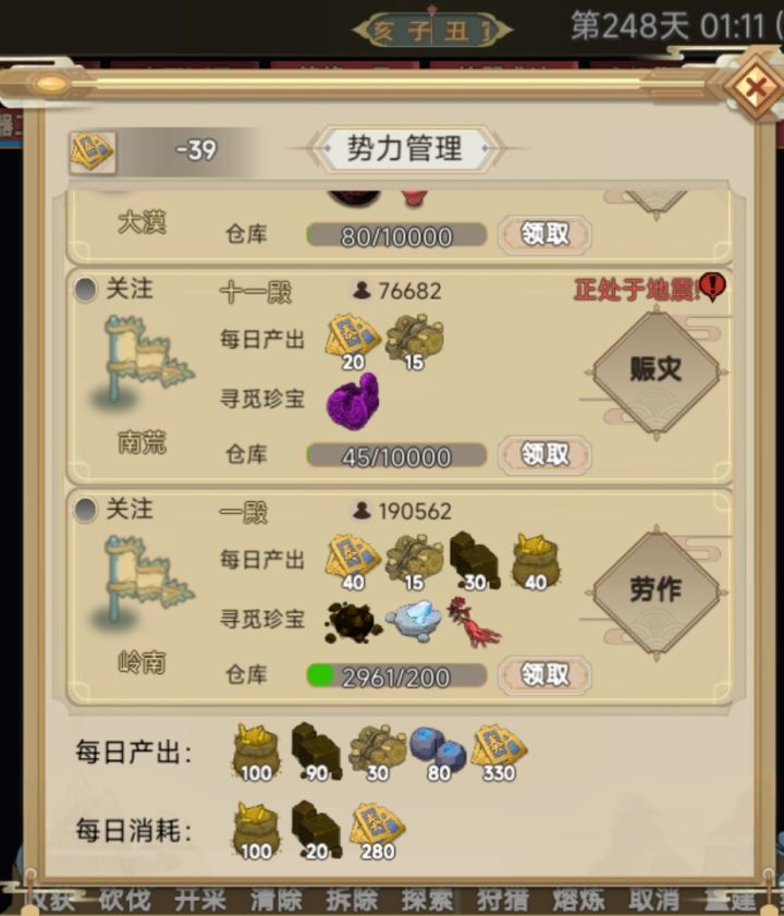 游戏中参悟值获取太慢?“门派大能”难培养?代理点养成了解一下:(代理点触发事件见评论区)🌟代理点介绍:初期触发秘闻【重建代理】后开启代理点,总共11个代理点(5个城市和6个乡村),可获取的资源有意念值,原木,棕石,小麦,灵石,各种当地珍宝(寻珍悟性7以上);升级为高级主殿还可建设获取各类buff和天道神丹(收集天道)的建筑;在势力管理界面选择“关注”(只能关注一个)的代理点事件触发翻倍,当然消耗