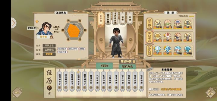 第一,轮回者:直接上强度,来两个满五维轮回者。其他的尽量选牛妖和虎妖,这俩干活快跑得快。经历选择:三阳功法开局,热心救人,药庐遗物,可以带十个赤参和紫芝,(飞羽仙狂和申申如也这种特殊轮回者也可以,别用白素贞。)2.地图选择:蕴灵树,我用种子的是“001”,平原大地图3.开局:工作勾选为睡三个小时,其余全部工作。看看哪个小人移动速度最快,赶紧立刻马上去探图,把蕴灵树找出来,因为你越早找到蕴灵树