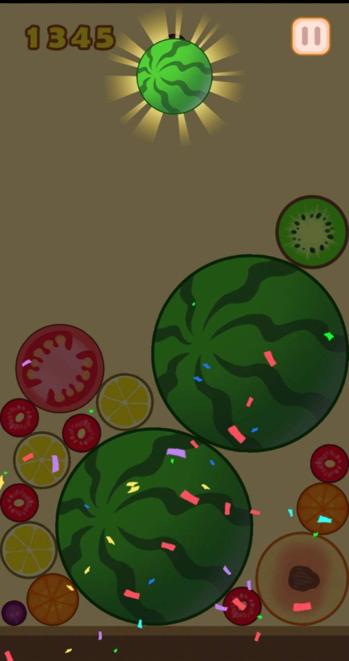 这个合成大西瓜,感觉没有切西瓜好玩,之前玩过这个游戏,感觉有点像俄罗斯方块,性质是一样的,挺简单的吧!就是相同的合在一起,最后合成西瓜,额。