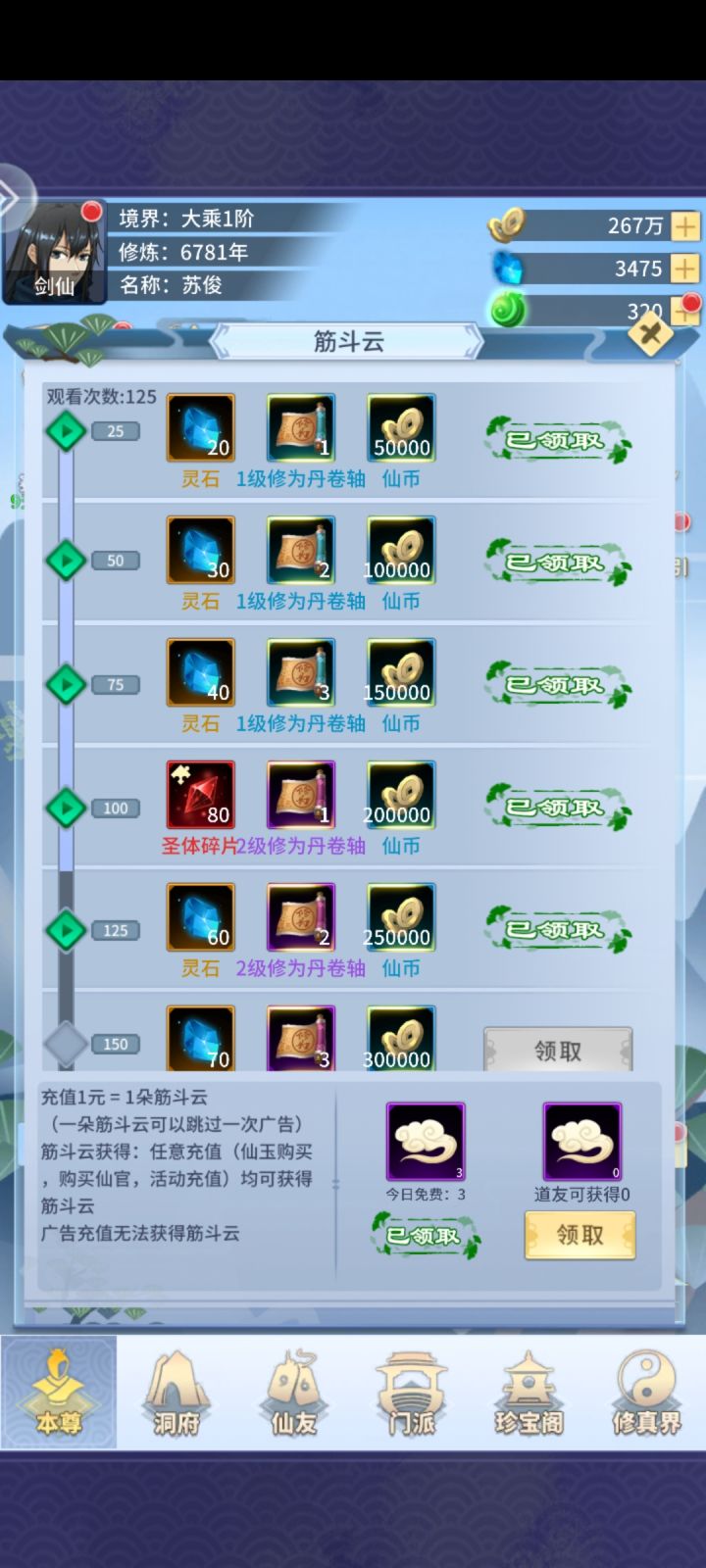 筋斗云咋没了???原来每天还能领,现在直接没了一天3个??????每天广告最少得看几十个玩个一个多月…卸了