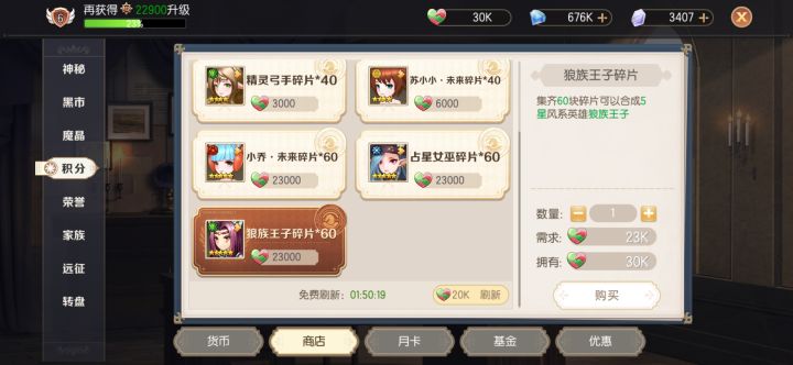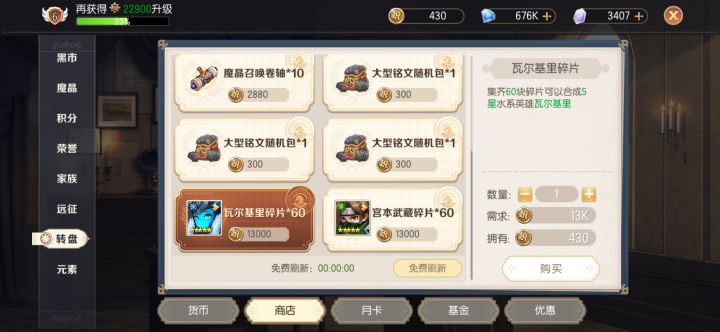 建议每次元素召唤增加元素碎片,玩家可使用指定数量的元素碎片兑换不同的5星魔灵