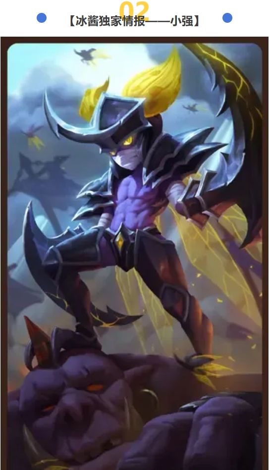 【老黄有话说】队长大大们好,这里是小冰冰老黄。昨天官方发布了新英雄情报,也就是下周上线先锋服的新英雄。不过官方的新英雄情报都是直接贴的图鉴图,基本上也不用猜测,下个新英雄就是小强!那么废话也不多说了,小强传奇服详情,一起来看看吧!官方的爆料简单粗暴,下次其实水印和虚化都可以不用打了,敏捷型前排英雄小强,稳了稳了!不过想必有不少队长大大传奇服弃坑的早,都快忘记小强的技能了,所以老黄找了一下相关资
