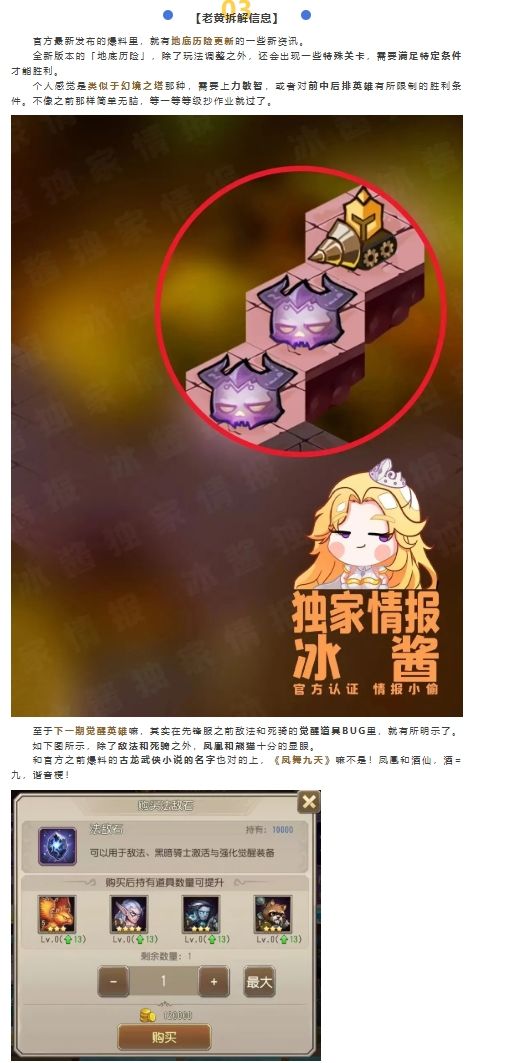 【老黄有话说】队长大大们好,这里是小冰冰老黄,新觉醒已经很久没上了,不知道各位队长大大意识到了没?关注官方资讯的队长大大应该有数,在某一期的推文里,策划说了觉醒玩法要大改动,所以暂停一段时间。但是觉醒英雄一般都要提前准备准备,所以老黄今天给各位带来下期觉醒资讯。废话就不多说了,一起来跟着老黄往下看看吧!