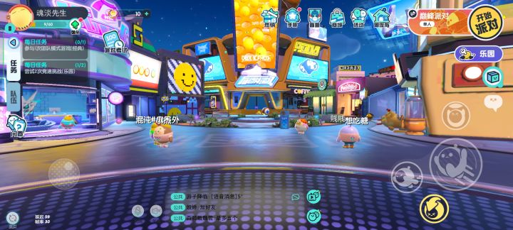 上午十点开服,我也是期待已久的点进去了首先呢,他那个大厅还是挺不错的,有一堆蛋仔站在里面挂机,或者是一些活跃的小伙伴在那里蹦来蹦去,大多数场景可以互动,比如那个摇摇车站到上面,它就会摇,还有上面的一个粉色的飞机,和摩天轮,然后可以把玩家也能抱起来,可以叠叠高哦!游戏玩法有点像糖豆人,又蠢又萌的蛋仔在各种关卡里向前冲,到达目的地,或者是分为两队的蛋仔比赛,仔QQ弹弹,那种声音对我来说确实是一种福