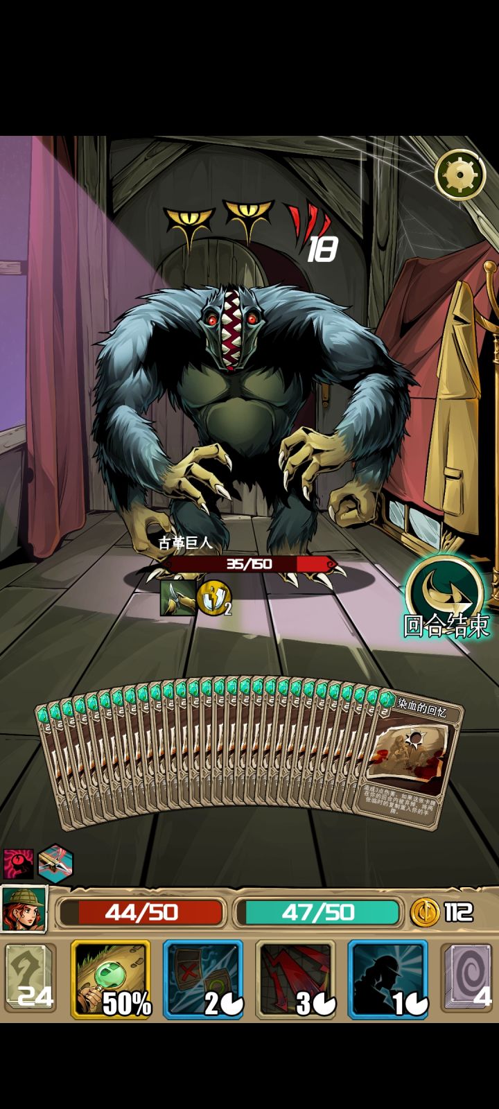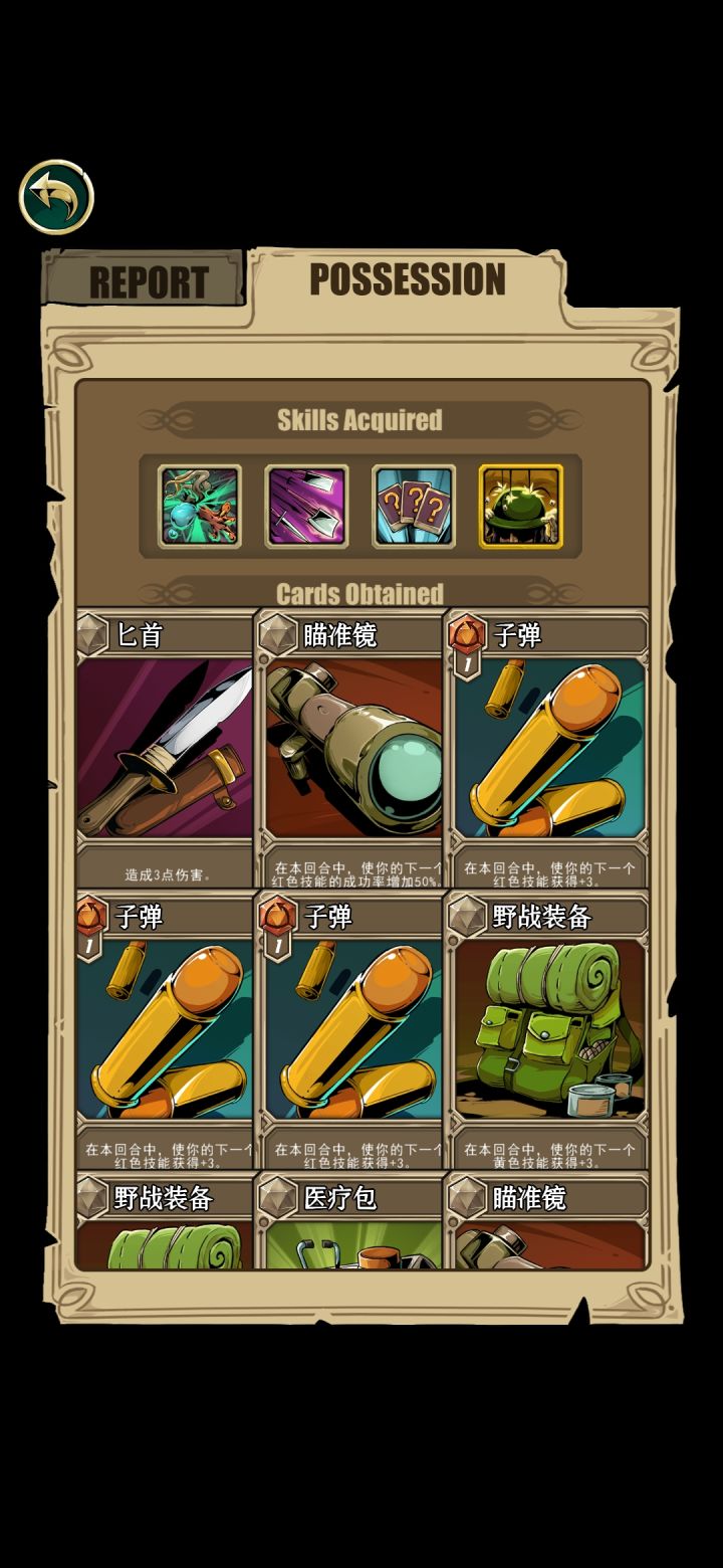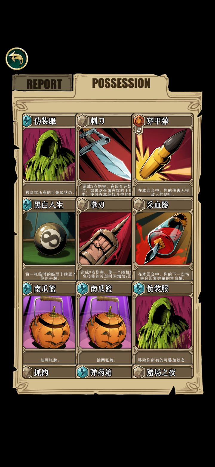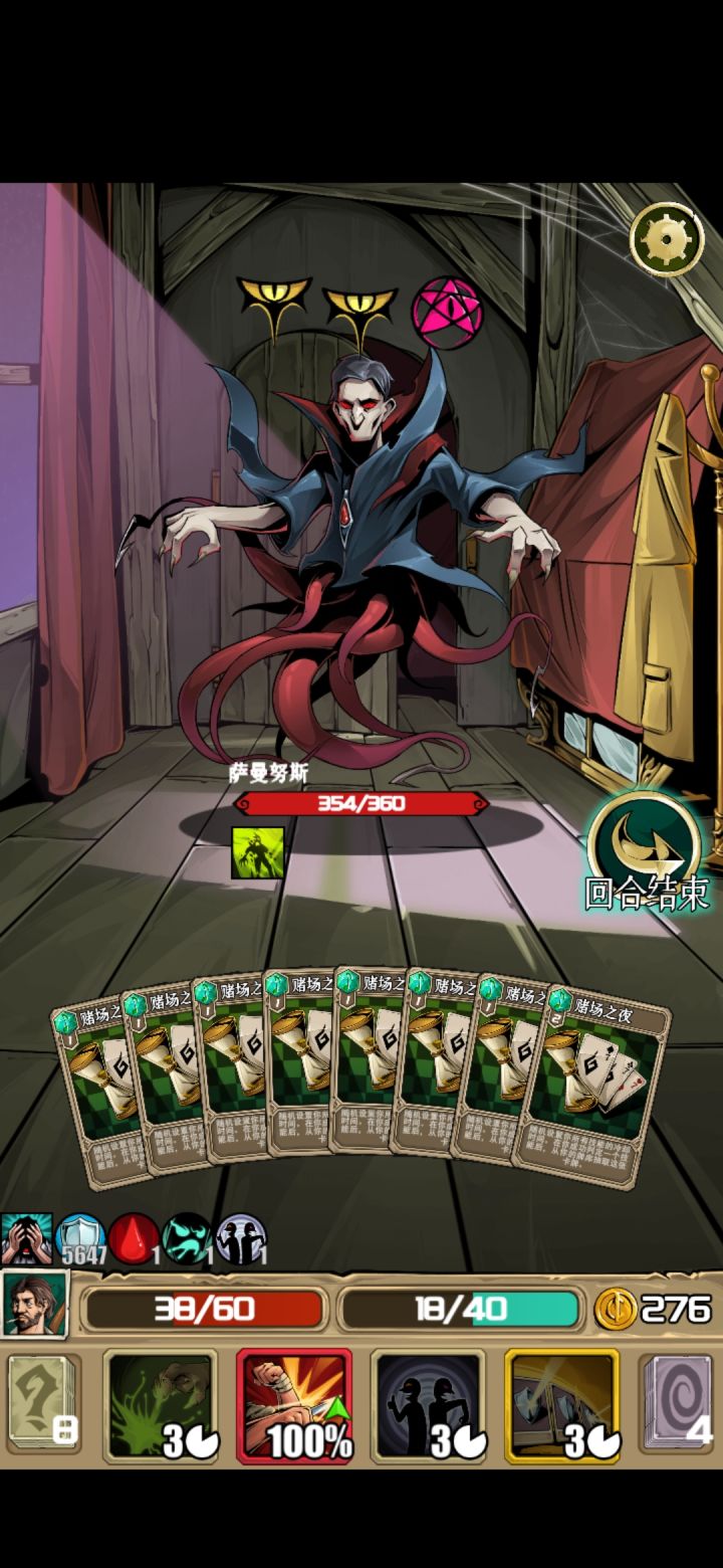 打的副本模式,终于通关了,最后boss吸血鬼。属于完全放弃红卡的打法,当然卡组里还存着一些废卡花不掉(红卡+3+50%等等卡手的卡),但没事有核心技能“以旧换新”,每回合可以放一次,可以弃掉所有手札得到临时卡(闪光弹手榴弹nb装备加理性的应有尽有,运气好点直接得到“赢的非boss战胜利”)。我第二个技能是打出移出游戏的卡的量的伤害,还有一张卡是装备卡(回合结束造成移出游戏卡*3的伤害),挺契合的。如果中间运气不好,直接退出应用重新读档就好了。打吸血鬼的时候,“死神召唤”在几回合内被刷新了好几次,直接把他送走了。而且就算手卡里被放满了无法打出的卡,也能被“以旧换新”换掉。嗯,至少这次游戏体验很好!