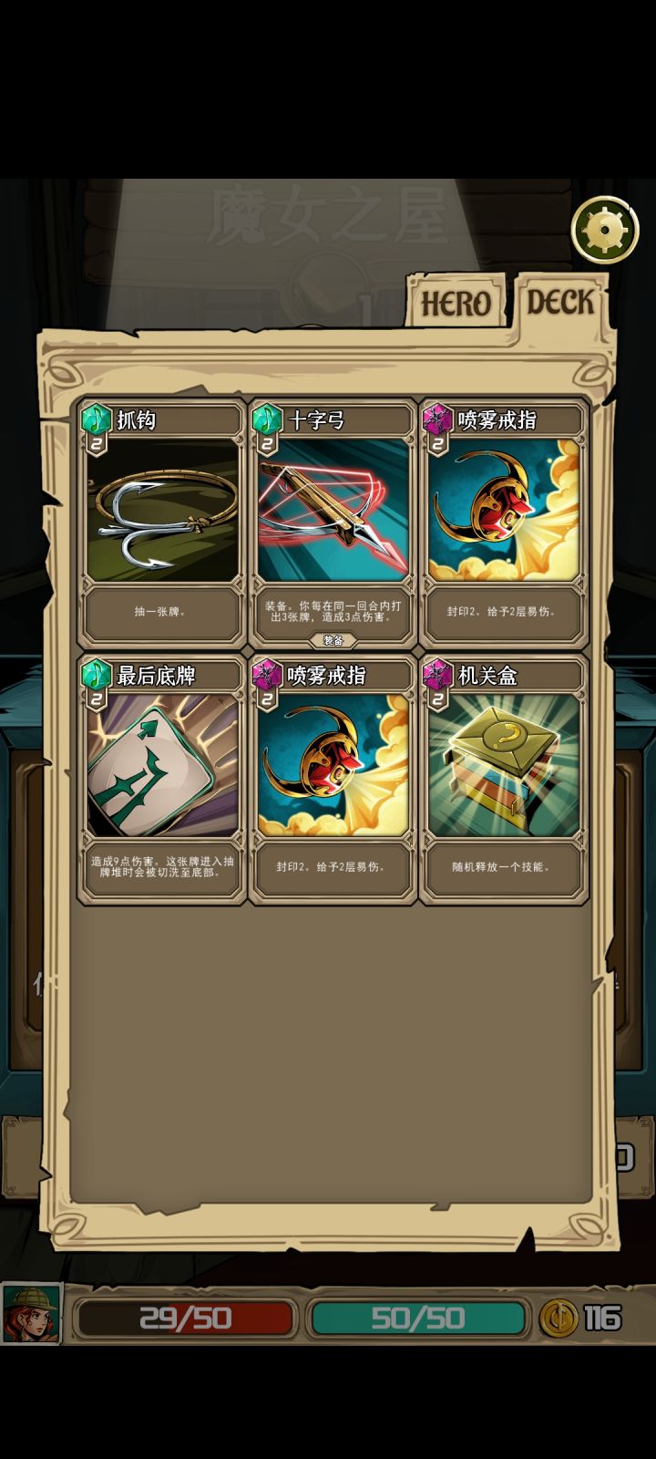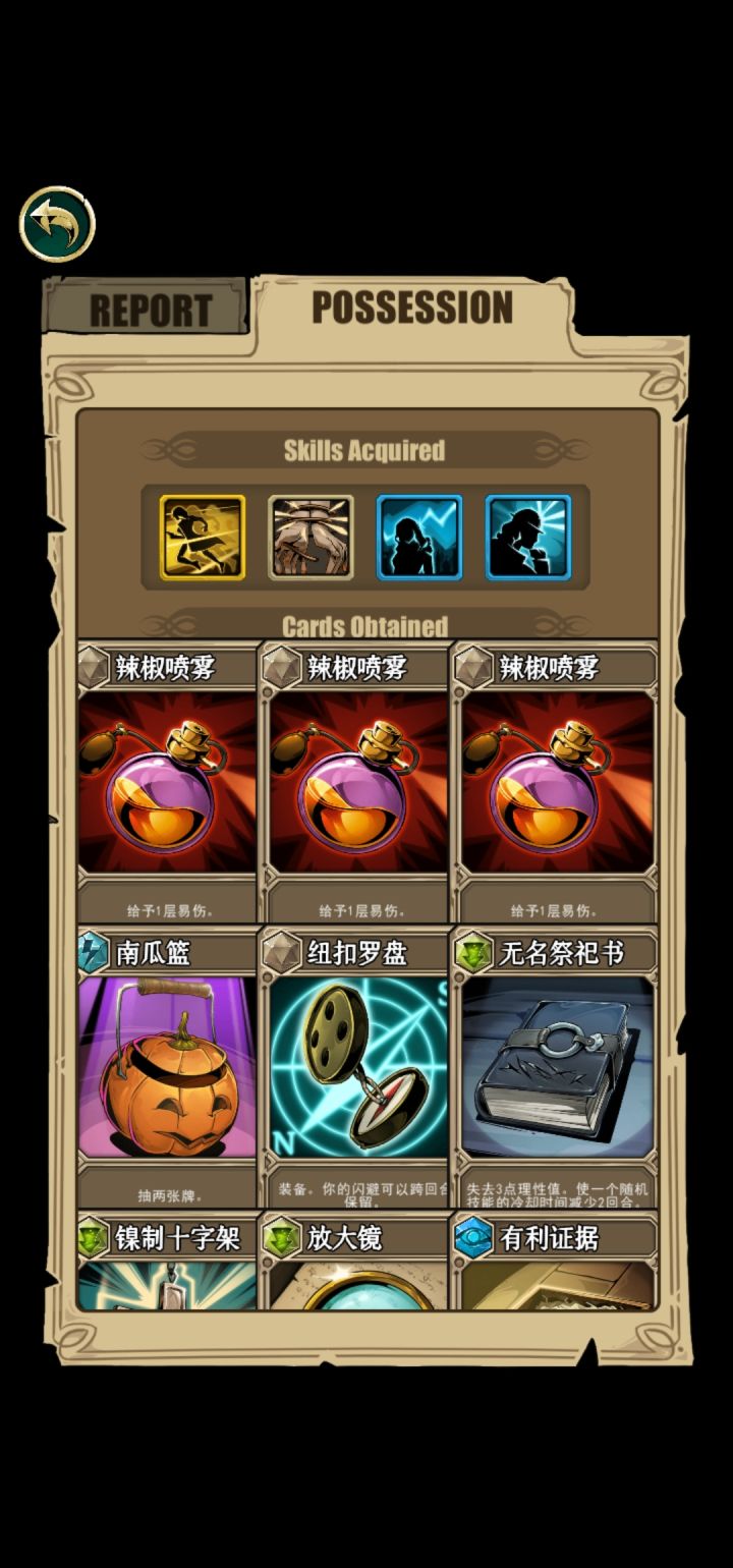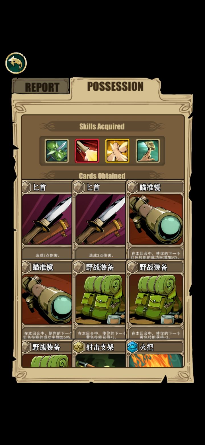 打的副本模式,终于通关了,最后boss吸血鬼。属于完全放弃红卡的打法,当然卡组里还存着一些废卡花不掉(红卡+3+50%等等卡手的卡),但没事有核心技能“以旧换新”,每回合可以放一次,可以弃掉所有手札得到临时卡(闪光弹手榴弹nb装备加理性的应有尽有,运气好点直接得到“赢的非boss战胜利”)。我第二个技能是打出移出游戏的卡的量的伤害,还有一张卡是装备卡(回合结束造成移出游戏卡*3的伤害),挺契合的。如果中间运气不好,直接退出应用重新读档就好了。打吸血鬼的时候,“死神召唤”在几回合内被刷新了好几次,直接把他送走了。而且就算手卡里被放满了无法打出的卡,也能被“以旧换新”换掉。嗯,至少这次游戏体验很好!