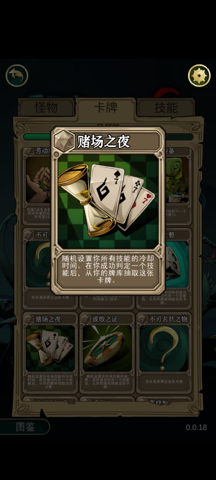 无敌组合,技能拿邪神召唤,打伤害,穿越银匙之门容错,还有一个技能随便,卡牌选赌场之夜