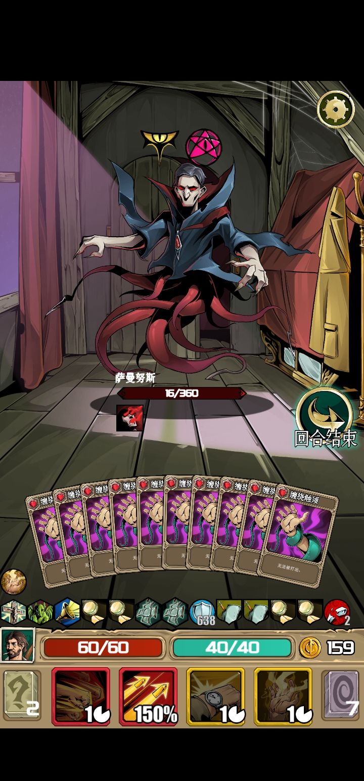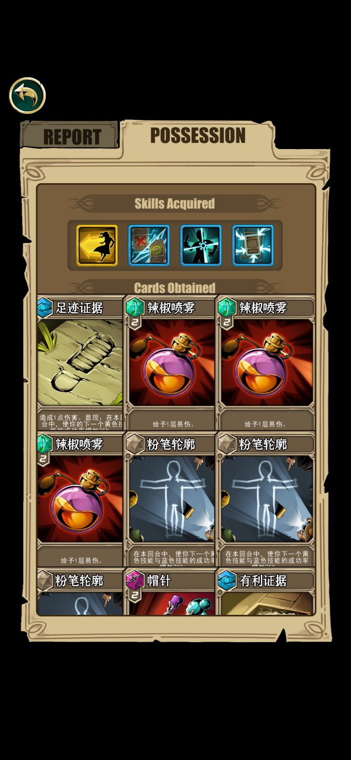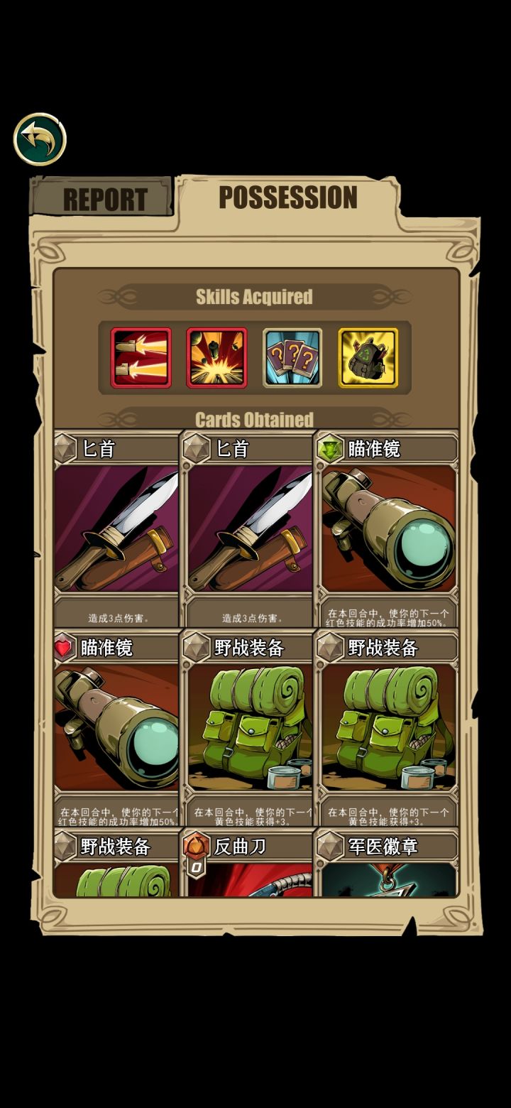 舍弃红色技能,本来要想来个白色技能没想到来2个黄色,顺便说地雷虽然爽,但第二个黄色技能最欧了,一半小怪都是抽出“非boss胜”的卡牌,还有各种加血加理智的药剂😁