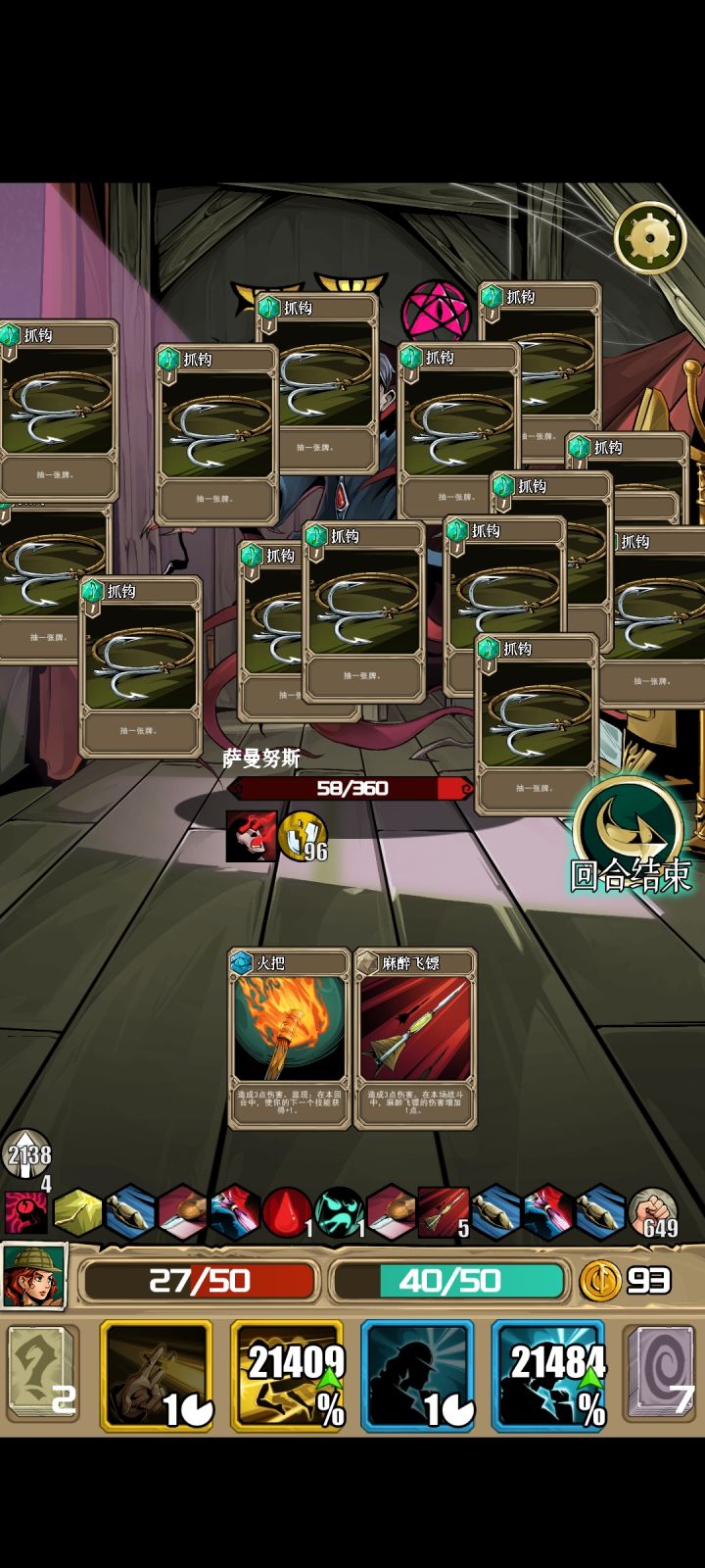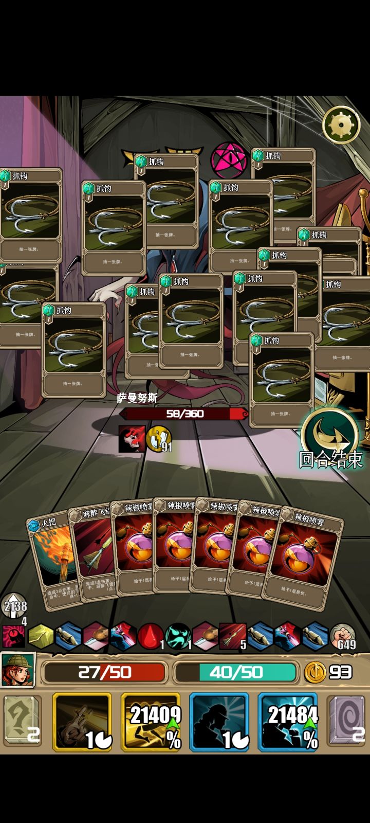 刷不动了,不然应该能刷个几千buff,两张永恒撬棍来回刷,这真的河里马?我这是第三个回合,第一回合key牌上手,第二个回合叠四五十闪避,第三回合这个数值就已经看不懂了,要不是我手滑甩了不少辣椒水还能更高,这算bug不算?还有就是刷到后面屏幕上面那一堆回响挂在那不碎了,手牌拉过去不会判定打出,会弹回手里。血量允许的话直接点技能2回合结束有80w+的伤害😂