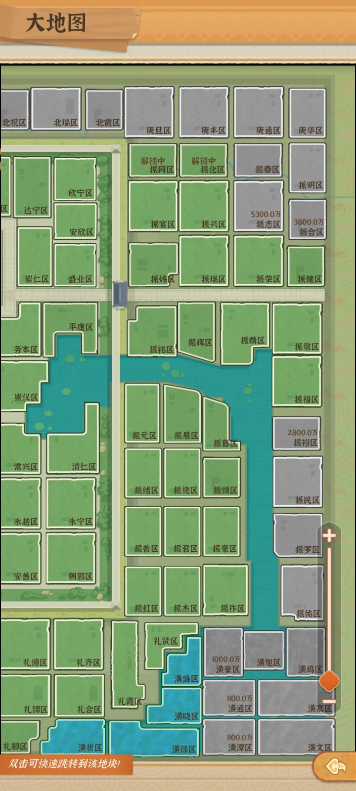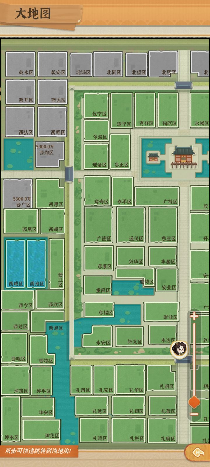 城内布局已完结,后面就是等城外的了,目前111块地,倒数第四张是给自己设计的一个雅苑,倒数五张是给自己设计的城主府,前三张则是天街闹市