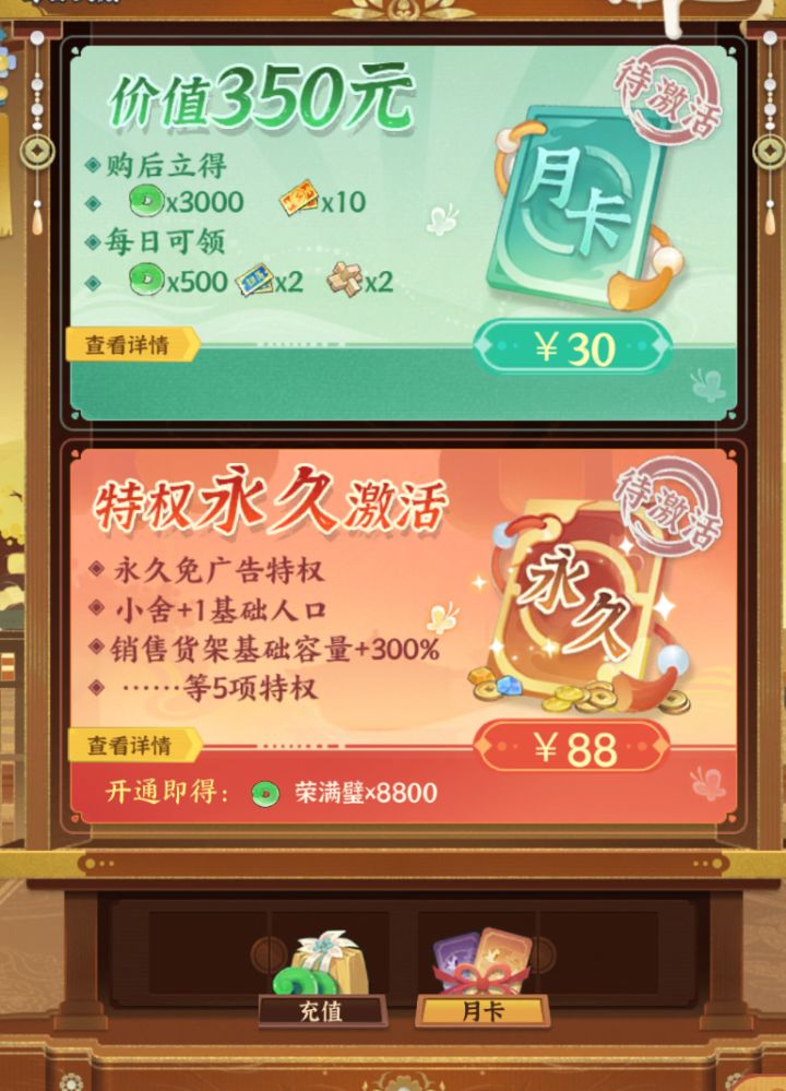 感觉游戏还挺休闲的,基本上资源啥的都够,不过有时候卡进度会很难受。问问大家有什么高性价比的氪金建议嘛