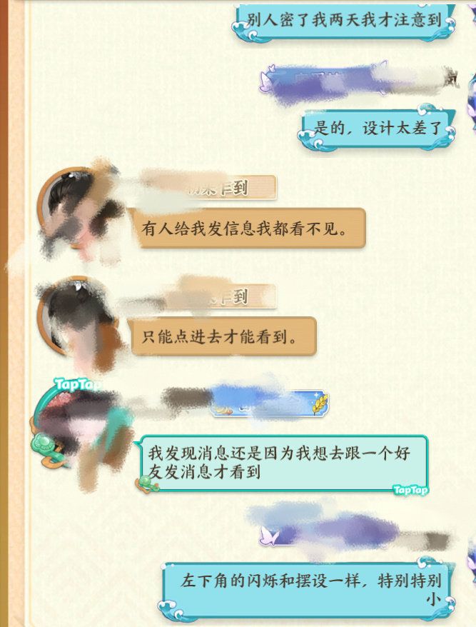 聊天系统优化一下吧,本来人就不多还分散在各区,结果在主界面的时候聊天栏弹出来的全是招募栏,我要做同文可以直接切频道啊。世界聊天全都被刷屏了。另外私聊提醒实在是太差了,左下角闪烁小得看不见!错过了就没了,好几个玩家提到没看见别人的私信,几天之后才发现。现在这种私聊对社交是负反馈好嘛。