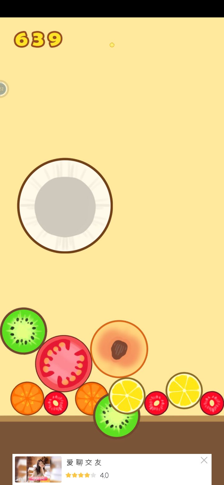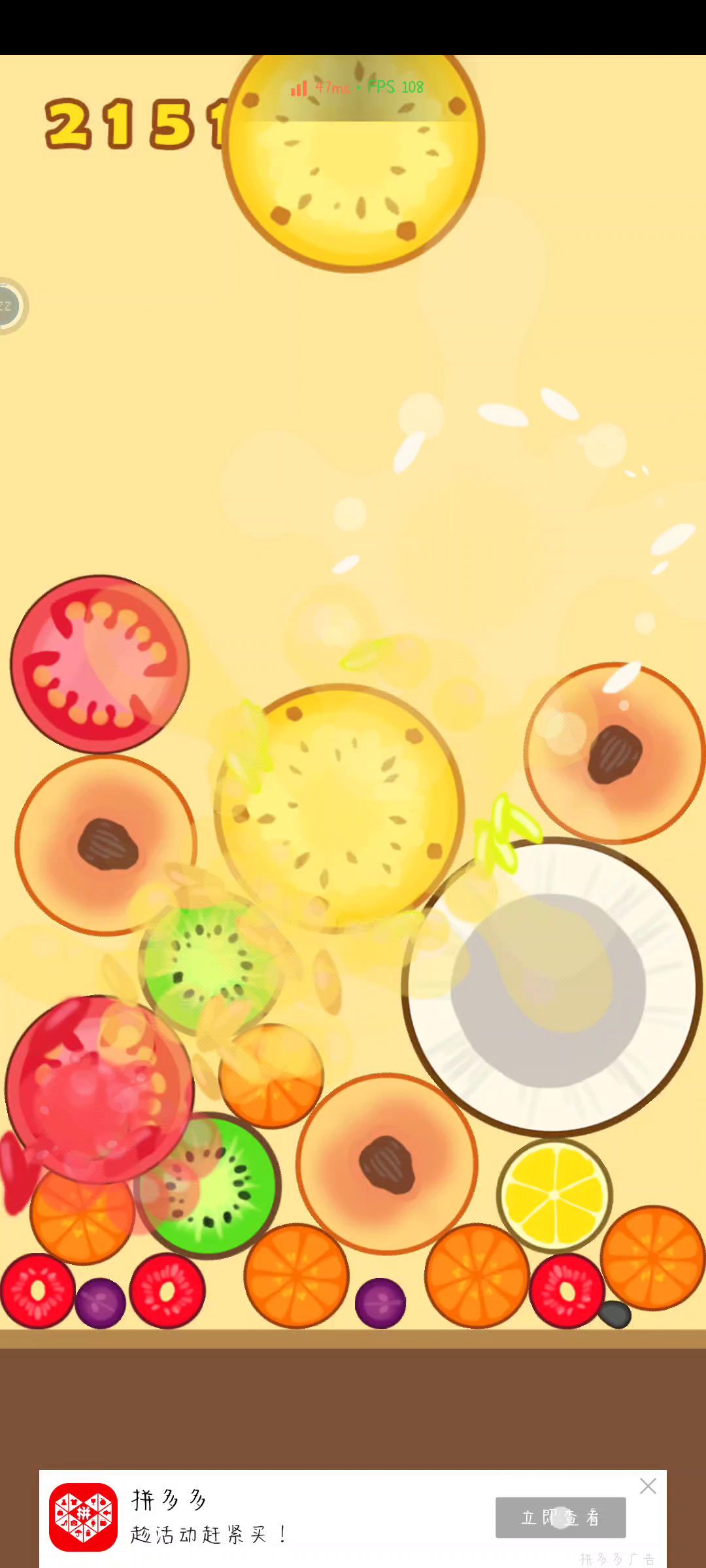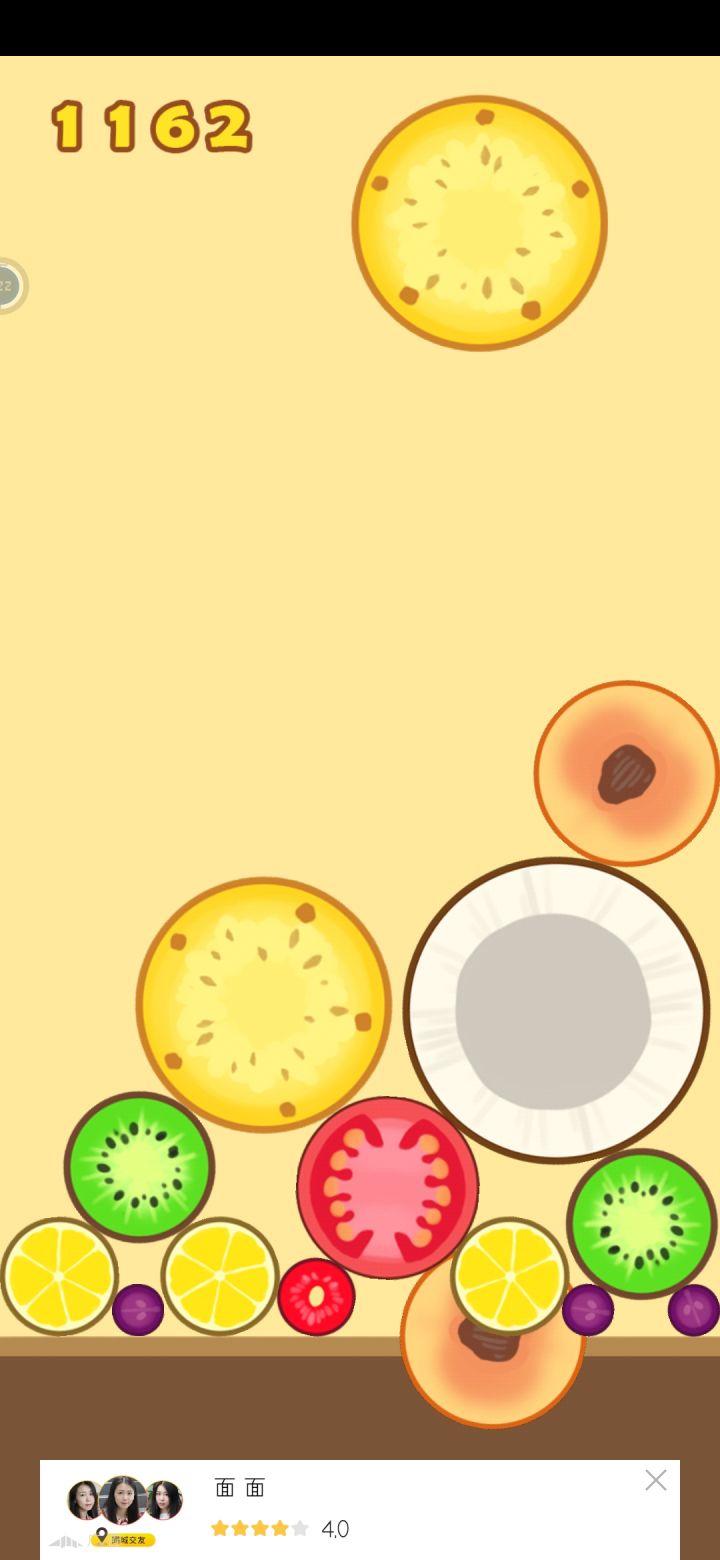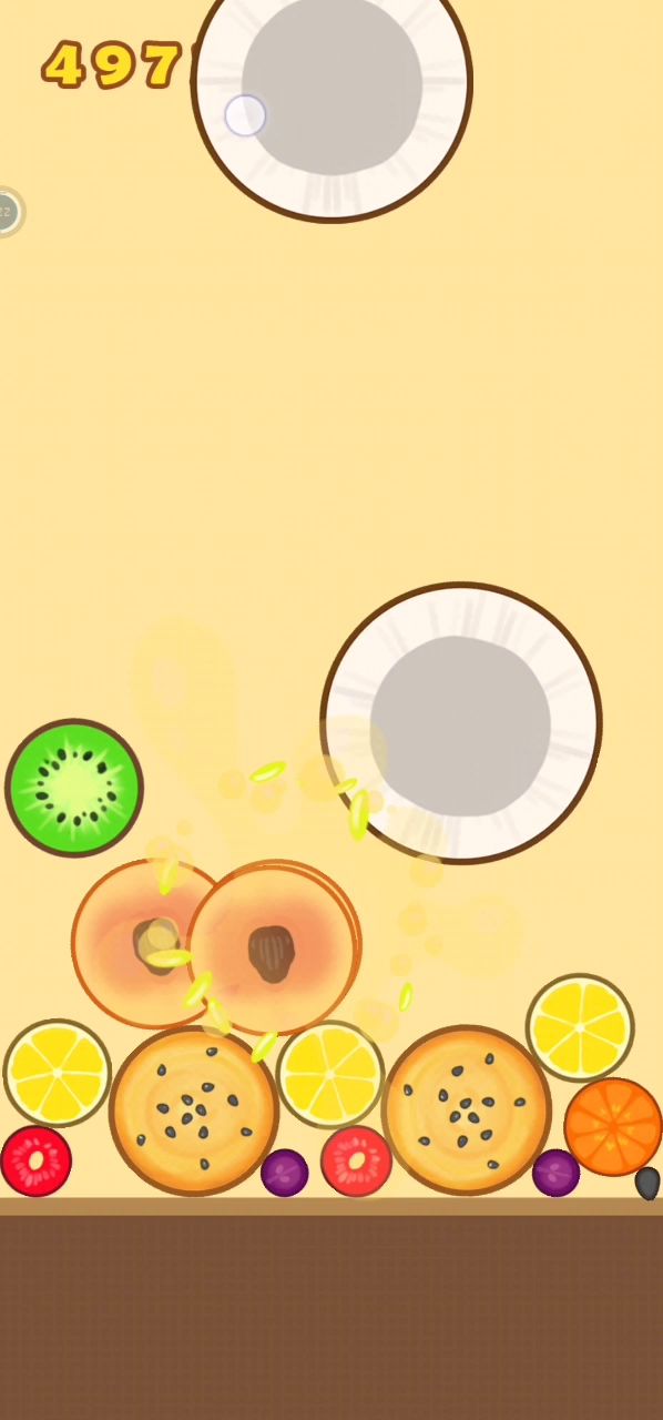 。。不是吧这小游戏也有bug。。合着合着水果突然抽搐卡死了回来档没了太难了