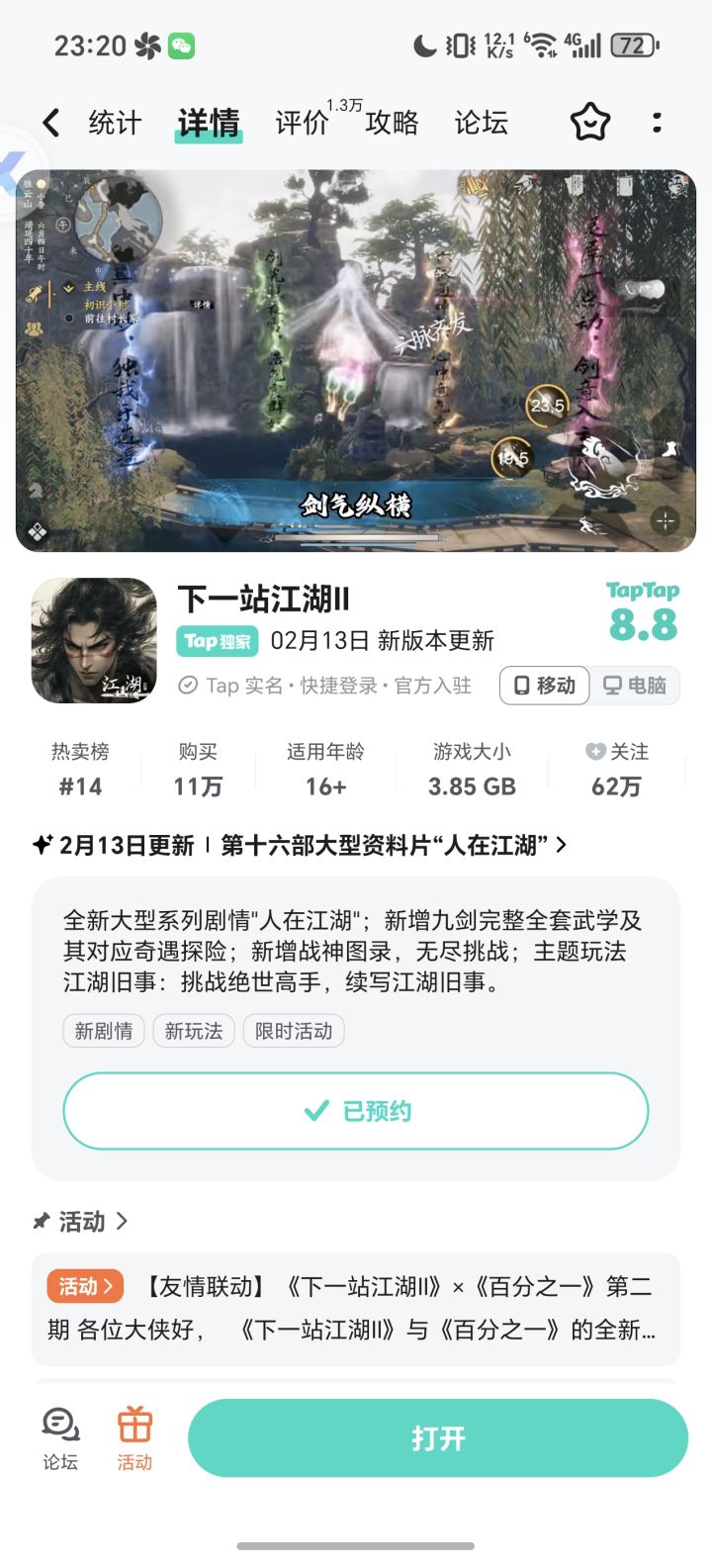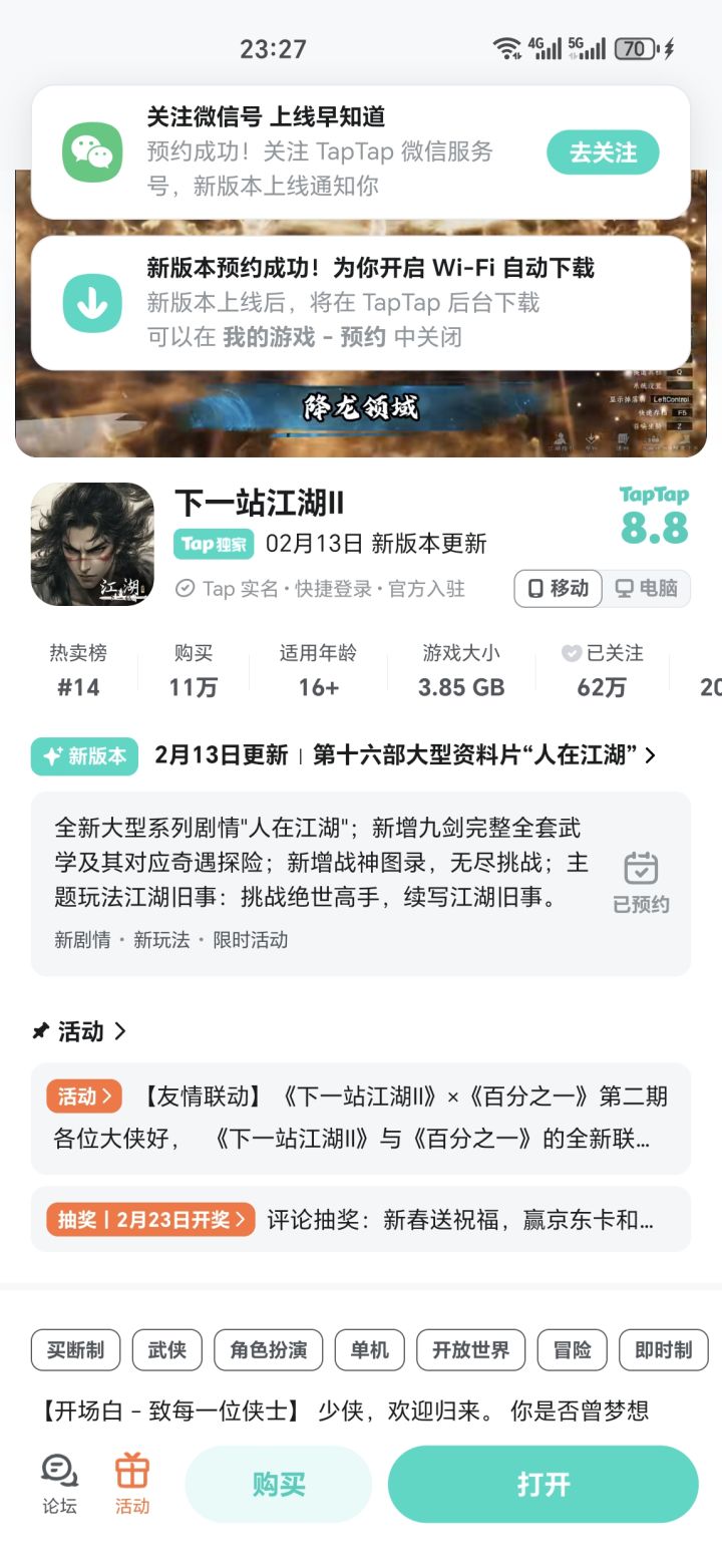 参与人在江湖预约活动免费获得武器特效和外观活动。