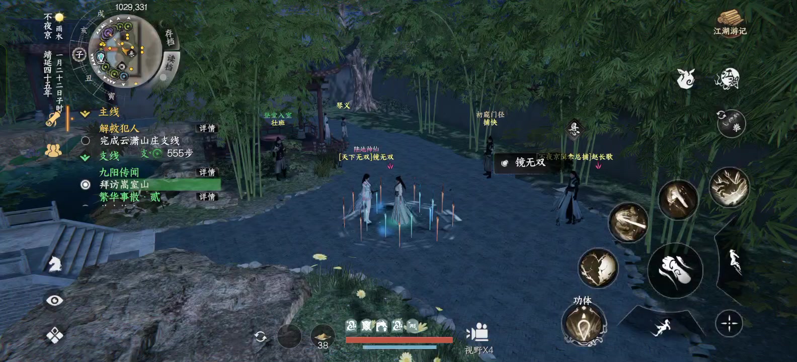 来到635.1401购买麒麟血,麒麟心来到758.1505劫杀或者巧取风之钥来到693.1457劫杀或者巧取龙之钥来到711.1436交互开启地宫进入地宫后来到左右两侧交互放入麒麟血和麒麟心回到中间后触发战斗剧情击败敌人后开启石门,进去后开启宝箱获得一些资源交互藏书架获得凌霄剑法晴空鹤化境卷#下一站江湖2 #攻略
