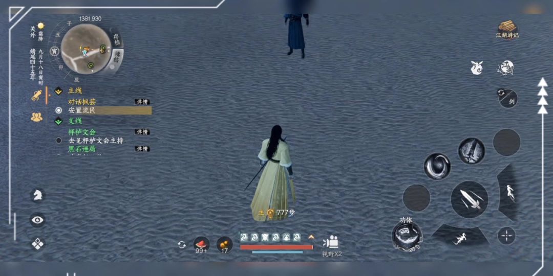 开场先用雁归来+剑来躲掉必死一拳,然后用剑二十三+蚀骨剑+星日马抓住他技能后摇风筝死他(也可以用其他秒发远程剑法,除了剑二十三必须是秒发剑法没前后摇那种)属性比我低也可以用这个办法打,我之前属性只有现在一半的时候就是用这个方法给他刮死的。