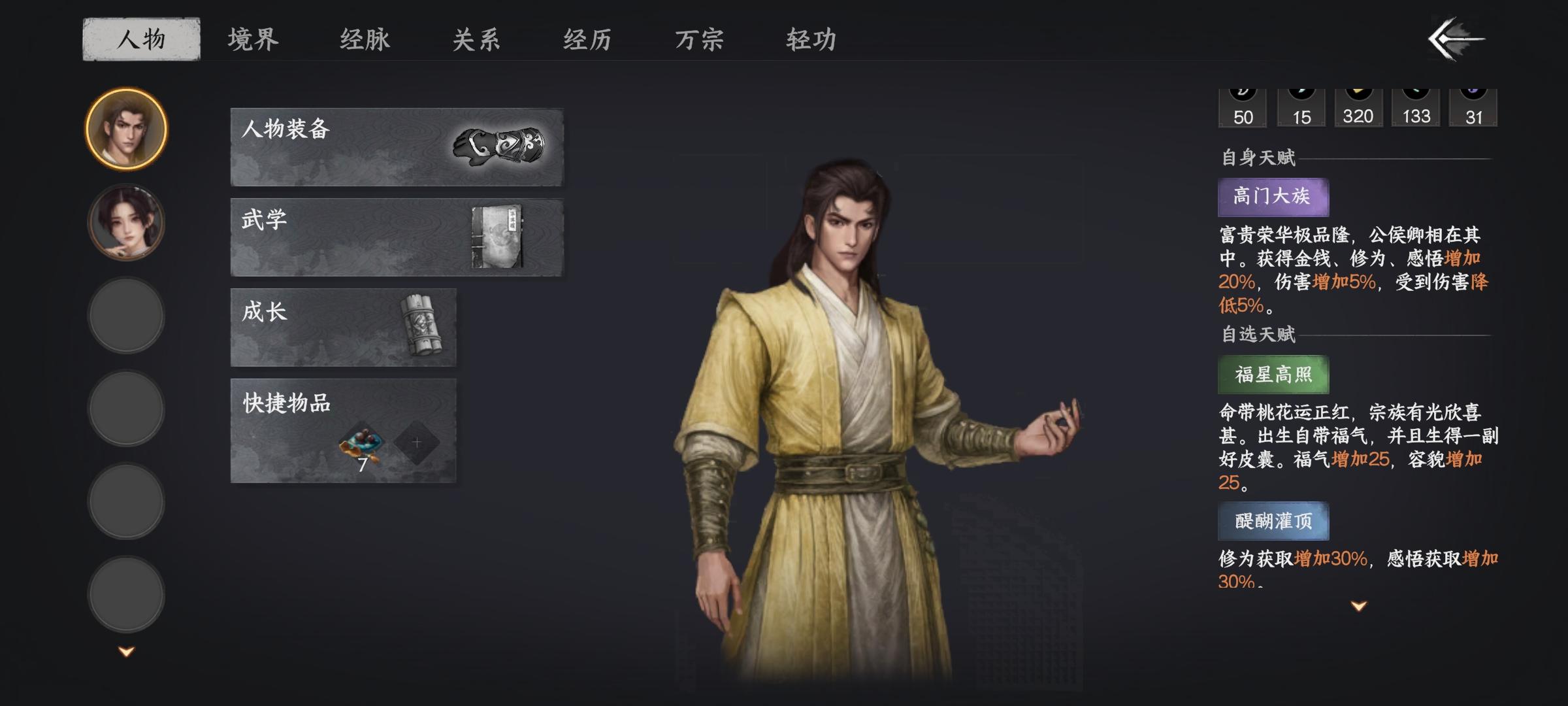 新人玩,不管你玩没玩过类似的游戏,看到这里,你玩着轻松一点,开局福星高照和醍醐灌顶,修为和感悟各30,加上自身属性各50,打门派任务几个任务就十几万修为,最好留点金币,去四象街买点加剑术和其他属性的,尤其剑术和墨学,买满就是了,还有门派任务打不过就跑,我已经陆地神仙了,也就3000外攻,4万血,打有些人还是刮痧,这类游戏玩得多