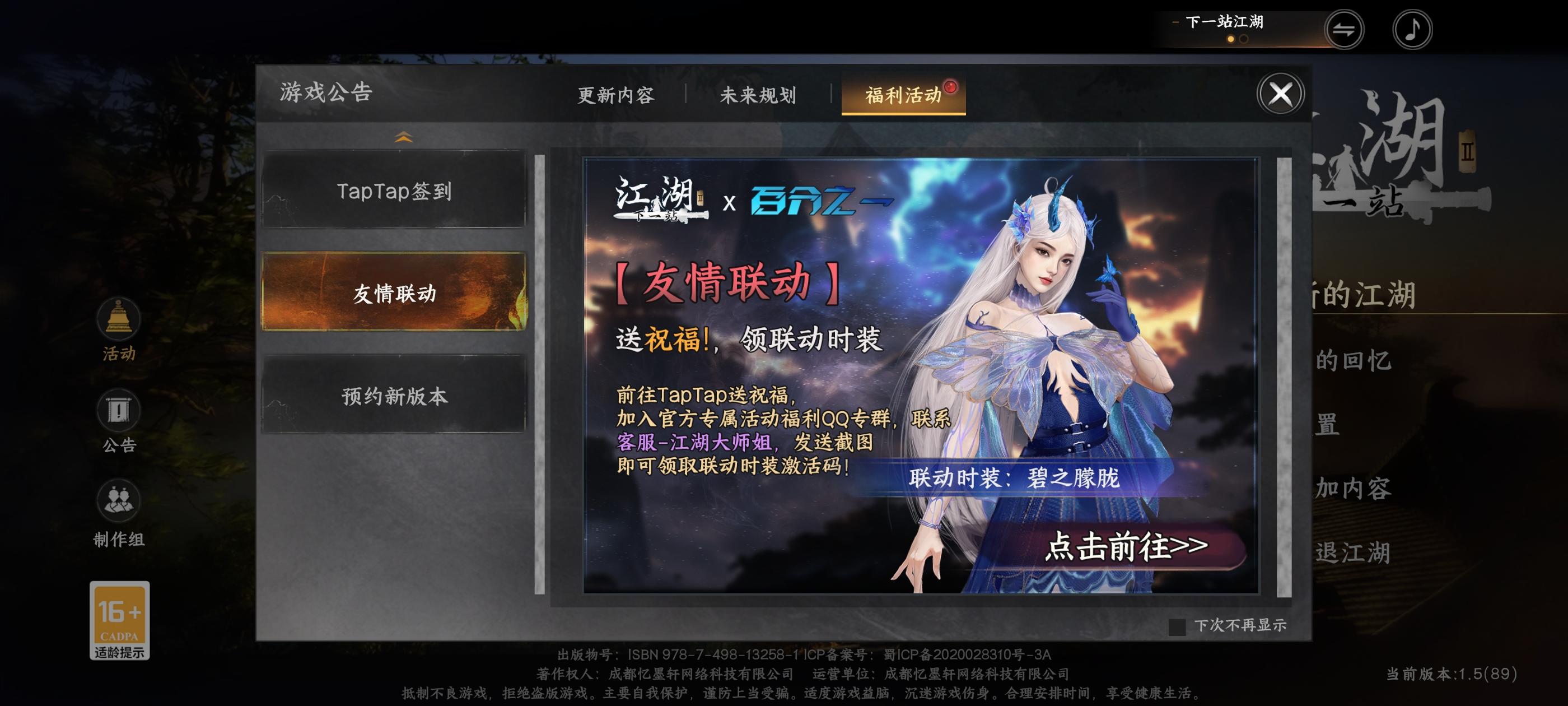 “送祝福,领《下一站江湖I》和《百分之一》联动时装”。 #下一站江湖2