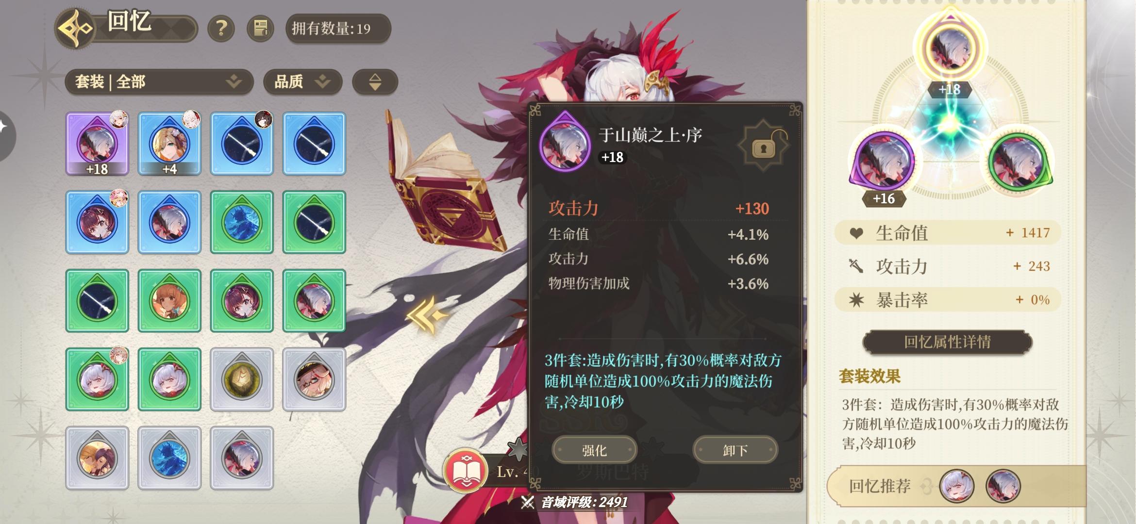 法师队好弱啊,打不过主线升不了级,升不了级打不了主线,回血回的也少,-----------把送的这两个紫的升了,勉强打过了,法师的回忆全是攻击词条😑