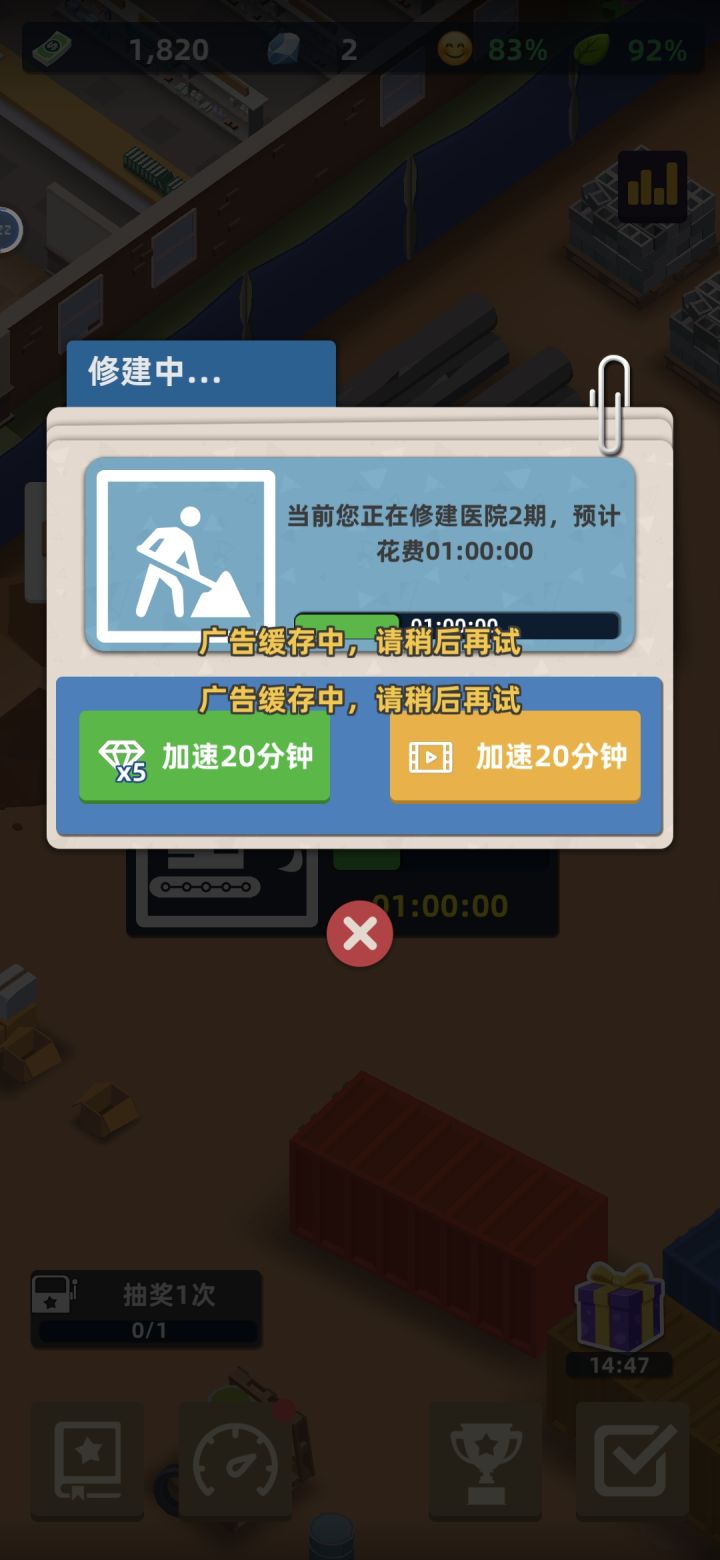 攒了好久的钱1200k开新图,本以为一觉醒来我能继续开新科室了,结果无了????好离谱啊,违停可以一直点,但是抽奖真的好烦啊,看不了广告,拿不了钻石都一直靠成就换,鬼都抓到满级,没有奖励了
