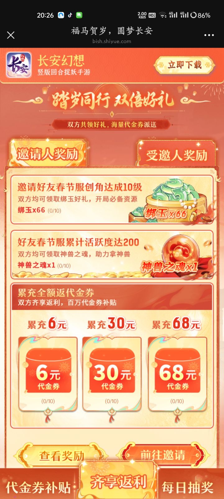 长安幻想邀请双方领奖励