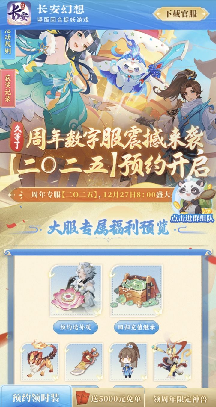 2025区预充值组队,充6元以上就行,混个组队奖励周年数字大服【二〇二五】预约开启,快来一起组队领奖:https://m.sysl.cc/S5qhutj#长安幻想新区