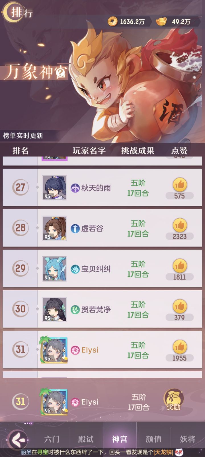 神宫猴子(进击/连击,物爆,超爆,气势,蓄势,吸血,反击,审判,)4力1体,其中反击和审判可以换别的技能,比如强壮或者感知(过神五感知没用)自愈,如果是其他神宫物理宝宝还可以多打一个坚韧抗揍。pve第一神宠,火凤凰,(连击,法爆,固法,护佑,强壮,灵犀,超爆,审判)5智加点,凤凰打副本每个技能都很好舍不得扣,最后得出结论是,凤凰要不扣4吧。打书方面偏向副本,审判可以换蓄势,站住场就无敌。自娱自