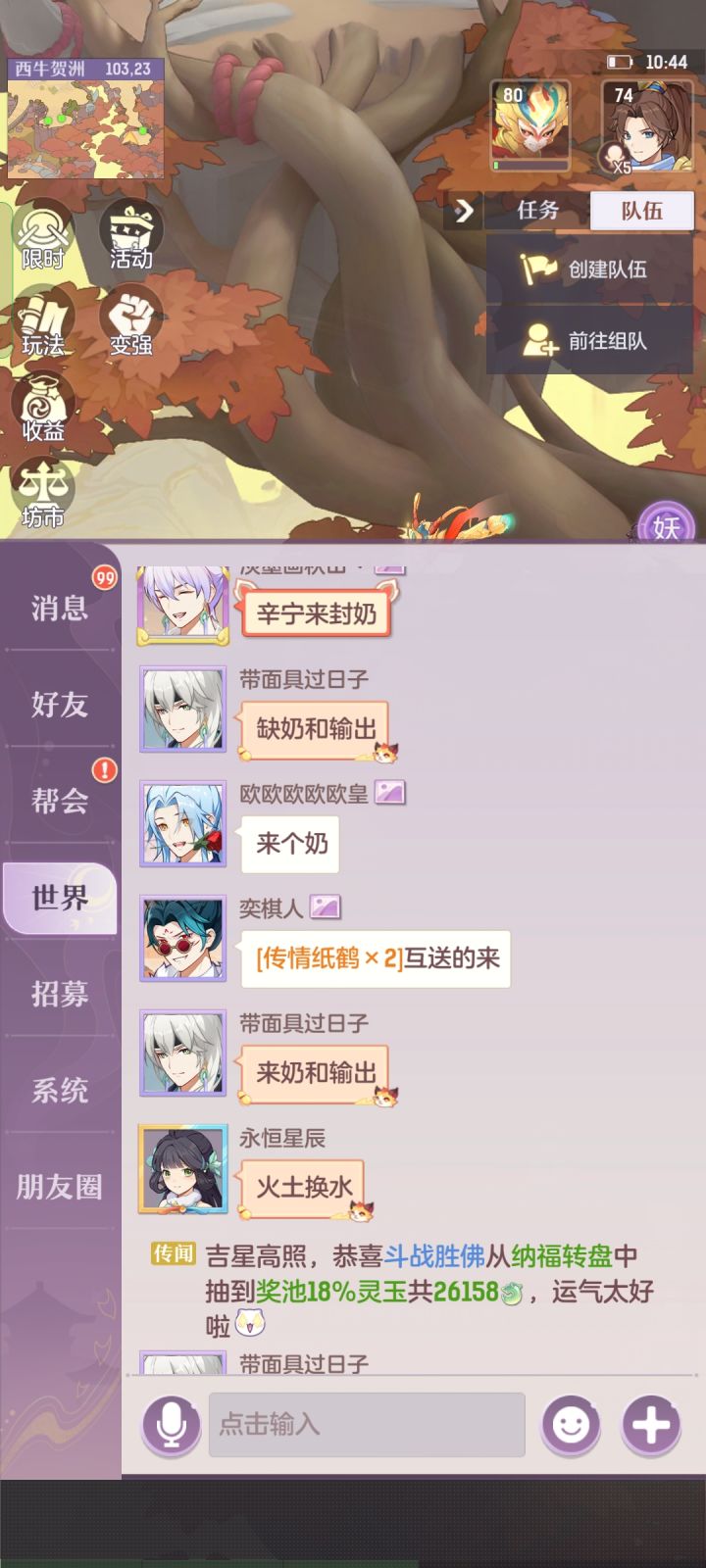 月卡党的日常, 还差5个魂 ,搞了坐骑 ,神兽进度慢了下 ,明天出小白龙我也用😂 靠耐反天兵和狐狸打日常 , 风伯不好用啊,前期浪费资源做了鹤和麒麟 。打塔居然能指挥怎么给我打上14层的 ,现在卡在18层 青丘打塔好难