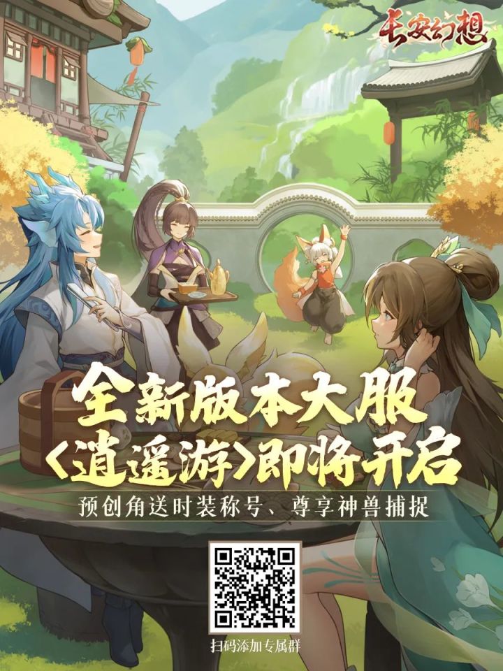 3月大服<逍遥游>即将开启,逍遥天地任我游!在【踏莎行】版本即将到来之际,小书灵向您隆重推荐3月版本大服<逍遥游>,我们将为各位准备免费宠物皮肤、连续七天开放神兽捕捉、天仙无限制、创角好礼等等内容~正所谓携手游四海,逍遥任我行!结三两好友,游遍长安更是一桩乐事!趁现在扫描二维码添加专属群,抢先找好亲友一起备战<逍遥游>吧!↓更多版本爆料请继续放心阅读↓众所周知,江湖不是打打杀杀,是人情事故