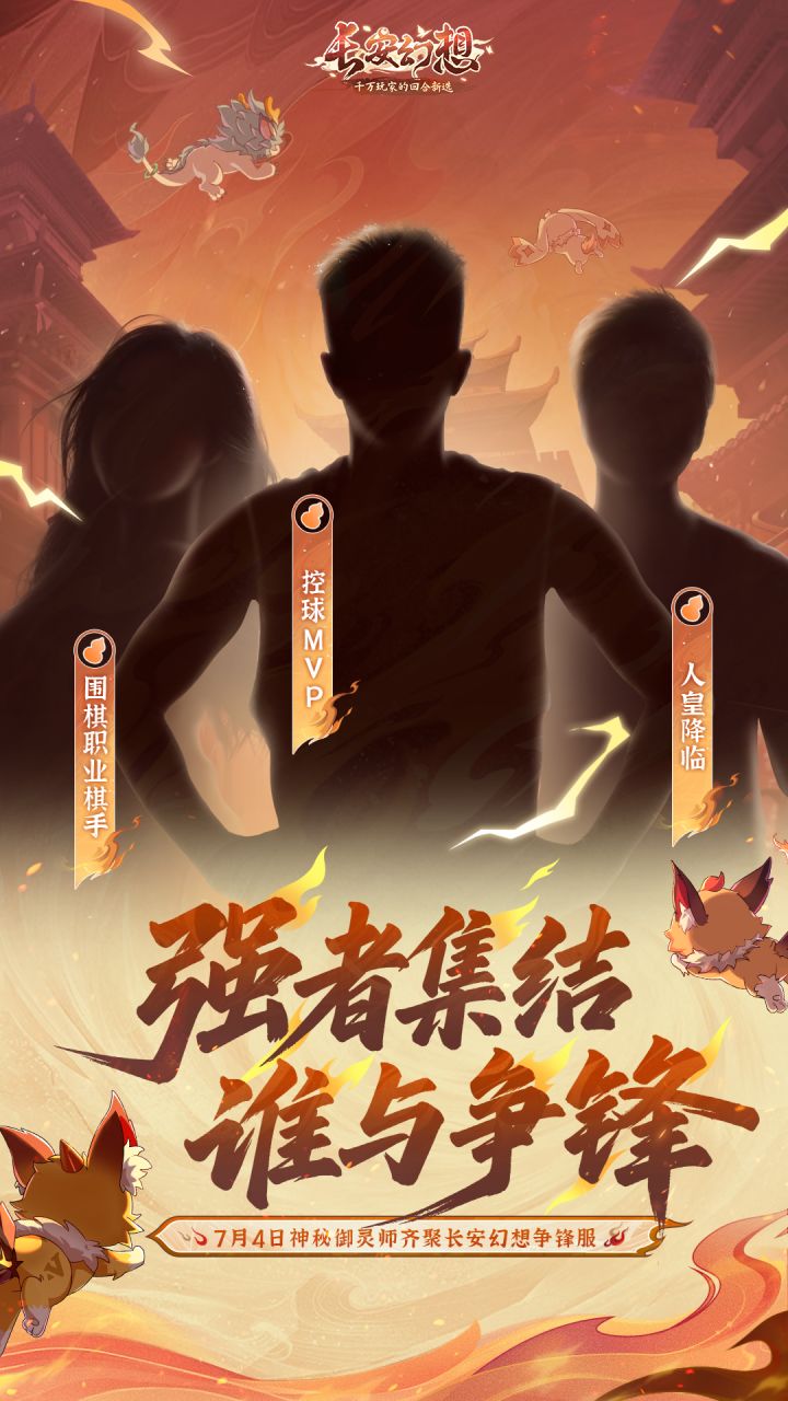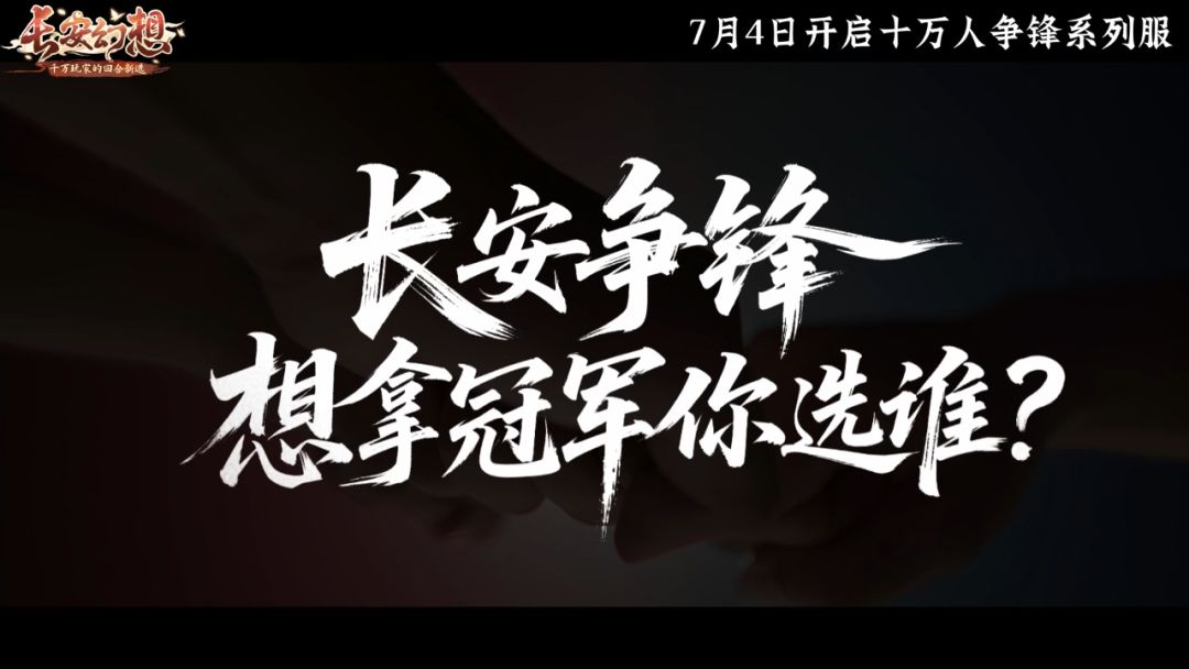 明日10点揭秘长安《冠军争锋》TVC! @郭艾伦:“冠军,要策略还是兄弟?” @SKY李晓峰:“没我的兵法,你拿什么控场?!” @棋手战鹰:“再强战术,抵不过我水友千军万马!” 冠军争锋,剑指长安!即刻前往预创角,抢先拿下预创角福利! 7月4日十万人争锋系列服开启,加入冠军车队,直取长安城!全新大型帮会GVG玩法、全新妖灵和超多版本福利内容来袭! 「争锋大服,火热开启」十万人争锋系列服来袭!预创角