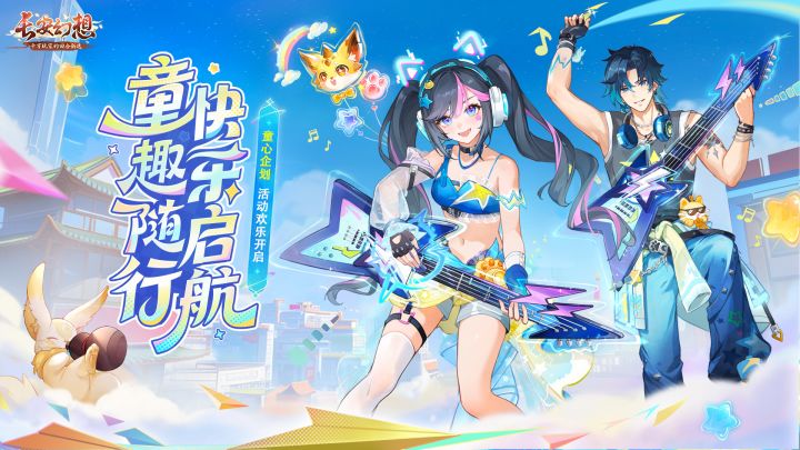 御灵师们,猪师兄我宣布:这个端午,长安将会迎来一场夏日国潮电音盛典——全新主题时装「燃夏音浪」及长安首款可自定义搭配配饰挂件的坐骑系列「气球派对」即将于本周版本更新后正式上线!◆ 时装:燃夏音浪◆ 获取方式:「童趣嘉年华」活动获取男装蓝色牛仔裤搭配黑色无袖上衣,展现不羁的摇滚精神。腰间小包,耳机轻挂,手中的电吉他弹奏着旋律,将国风韵律与现代潮流有机融合,演奏出燃爆整个盛夏的音浪。女装蓝色比