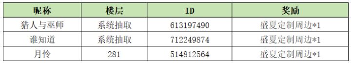 【活动开奖】恭喜以下御灵师获得本次活动奖励,请于7月8日12:00前凭【关注截图】+【中奖截图】+【游戏账号截图】,私聊助理-小书灵完成兑奖,超过期限将视为自动放弃哦,祝各位大大游戏愉快~骄阳似火,长安城的天空都透亮起来~阳光在青石板上跳跃,蟋蟀也跟着节奏摇摆,妖灵们都等不及去草地撒欢啦!御灵师大大快看,晴空上的白云像不像一团柔软的棉花糖?快来评论区参与互动讨论,抽盛夏定制周边~ 📅 活动时