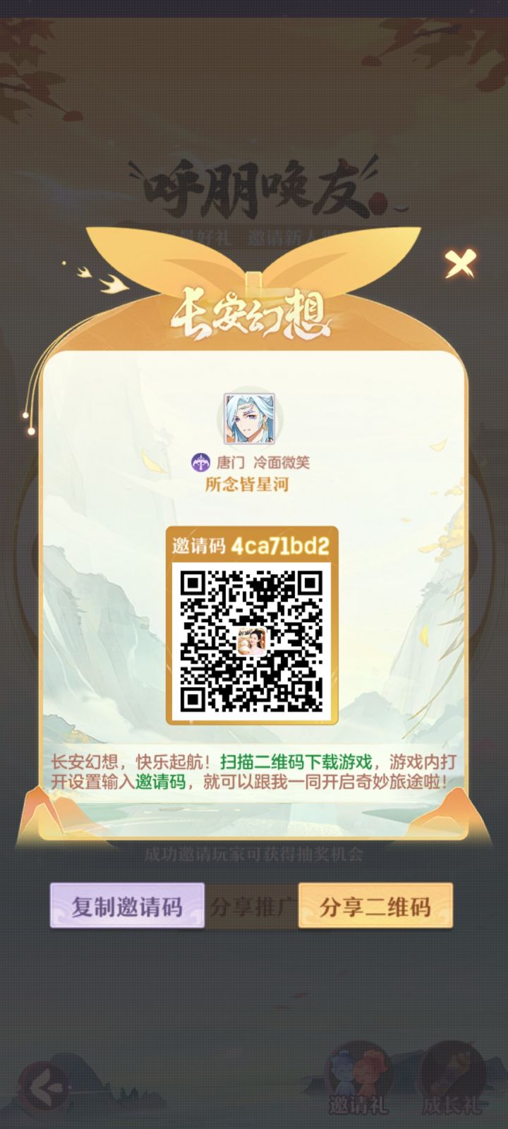 我在长安等你一起捉妖冒险!我是将进酒区的牛三,我的邀请码是7b0ef167,快在游戏内打开设置输入邀请码,跟我一同开启奇妙旅途!