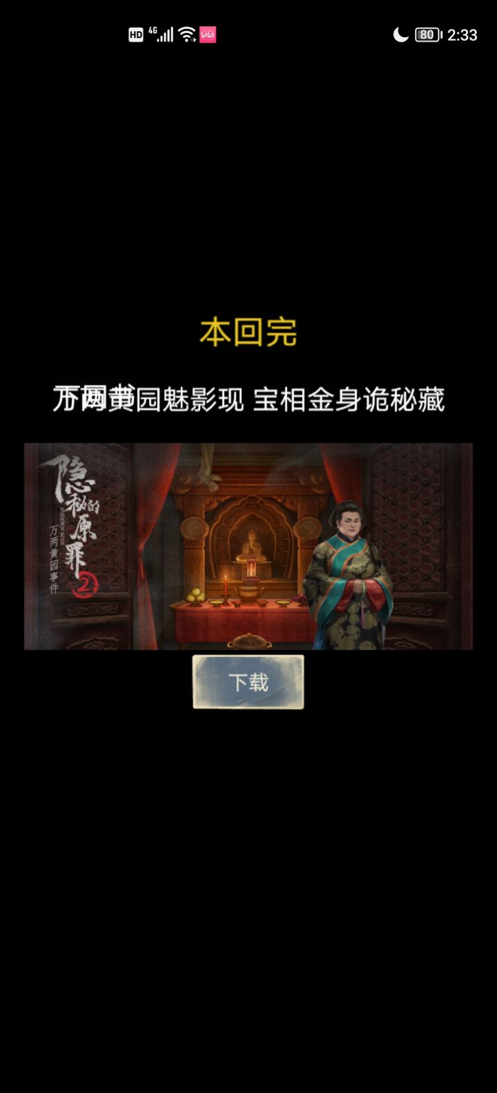 点三个线索,总会出现一个没有倒计时,只能用体力完成。4的广告有些长一分钟啊!!别的游戏基本上看30s就可以跳过,但这个要完整看完,我真的晕。而且点击广告的关闭图标❌就闪退的问题依然存在,134都有这个问题。【点一下广告再点关闭可以解决,但很麻烦啊!!】机型:华为mate40系统:鸿蒙4.2#隐秘的原罪4