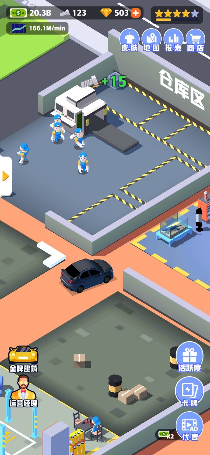 建筑升级后,零件居然只有十五个十五个出。满级了还供应不上三个修车位。