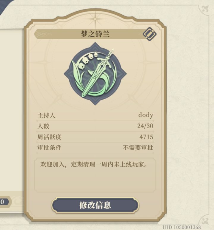 有人加公会吗,目前19人,活跃19人,原公会会长不上线被我取代了#铃兰之剑