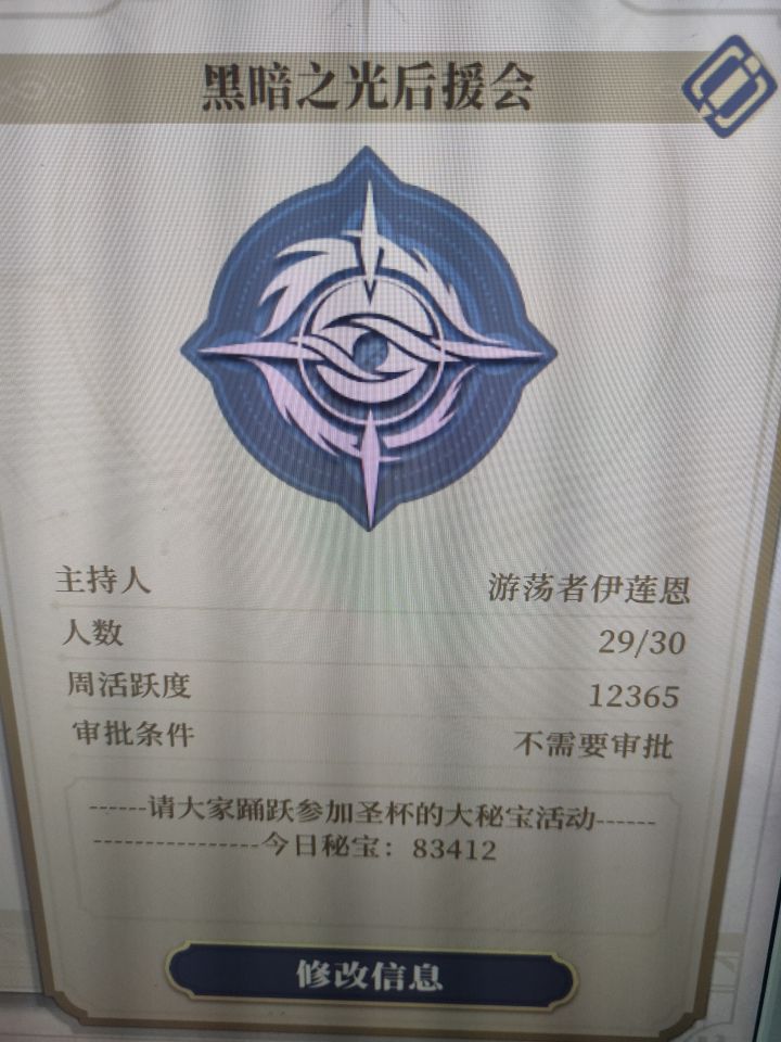 欢迎来玩唯一的要求就是保持日活,3天不在线就会被送出。虽然留的是Q群号,但我们平时都在微信聊天。入会后我来加微信。复制 薇尔塔之手 ,进游戏直接找我们不迷路祝大家玩得开心