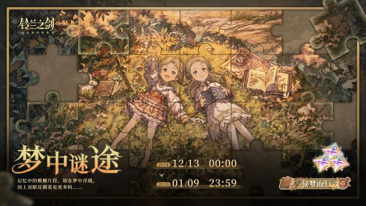 记忆中的模糊片段,却在梦中浮现,闭上双眼反倒看见更多吗……团长,在「长梦终渡」的故事开始之前,先来完成拼图吧!说不定能从拼图上获得什么资讯呢~🧩 活动时间:2024/12/13 00:00 - 2025/01/09 23:59🧩 活动奖励:希望晶石、称号「驭梦而行」✦ 官方公众号:铃兰之剑✦ 官网游戏下载:↓↓↓#铃兰之剑 #战棋游戏 #像素