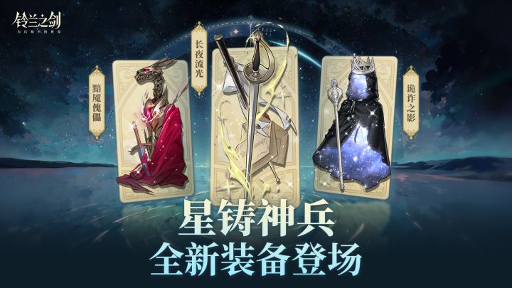 「星铸神兵·光影」系列装备新鲜出炉!来和小场记一起看看最新情报吧~⭐ 长夜流光(武器 - 剑)攻防属性提高。对已方释放技能后,驱散减益,并施加随机增益及[长夜流光],使目标获得伤害提高。⭐ 黯魇傀儡(武器 - 杖)魔攻与生命值提高。造成伤害后,对目标施加减益;若使用「减益」技能,则施加的效果提升,并额外施加[黯魇傀儡],使目标获得穿透易伤。⭐ 诡诈之影(装具)攻防属性提高。可免疫一次定