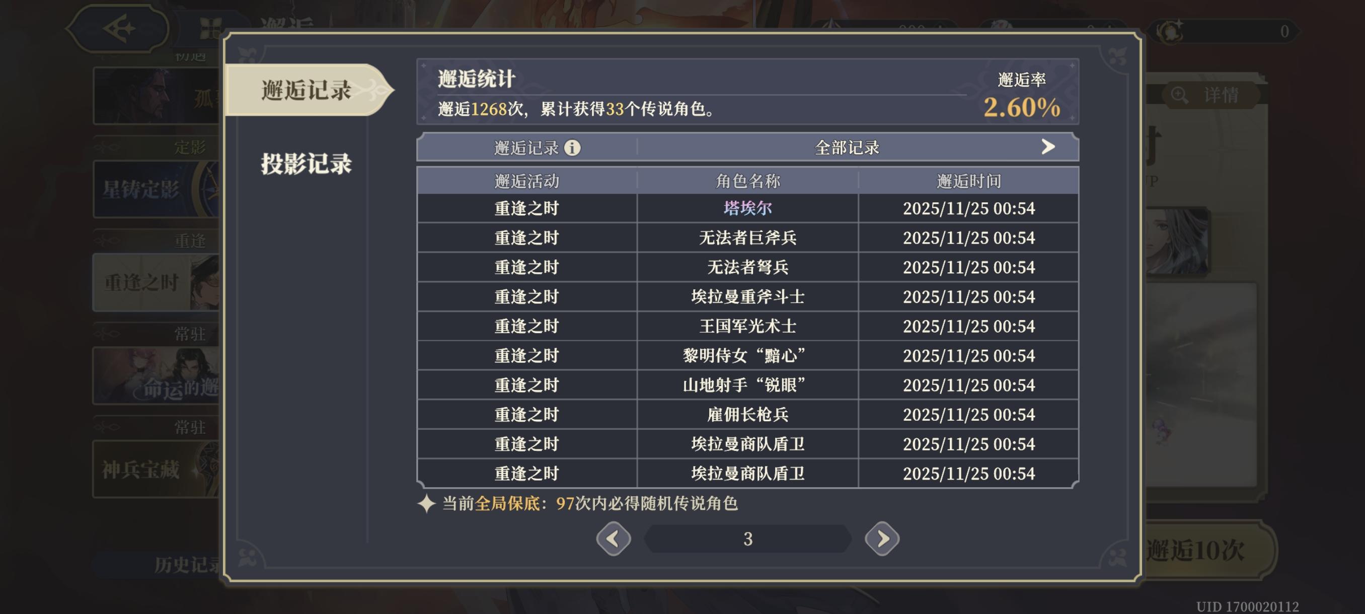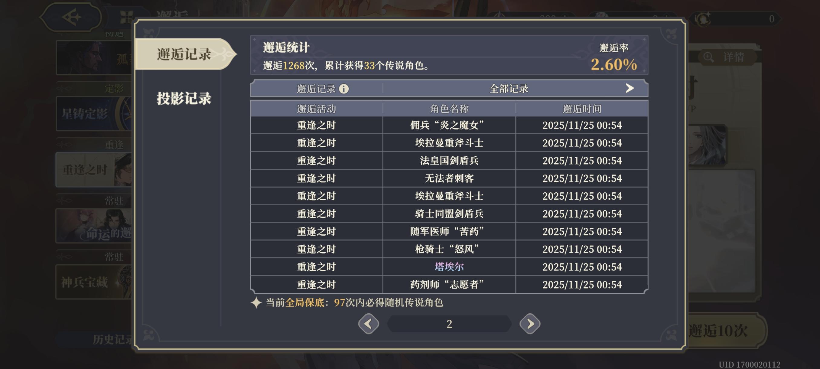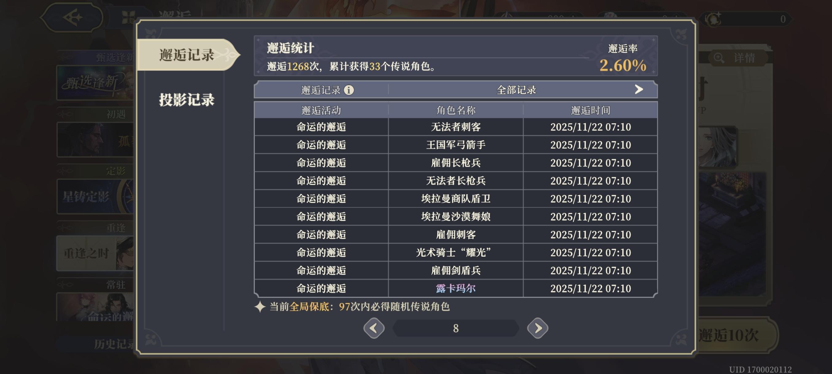 抽了100多抽,系统还是一直提示7次必得随机传说角色,结果怎么抽都是这个提示,什么情况#铃兰之剑为这和平的世界