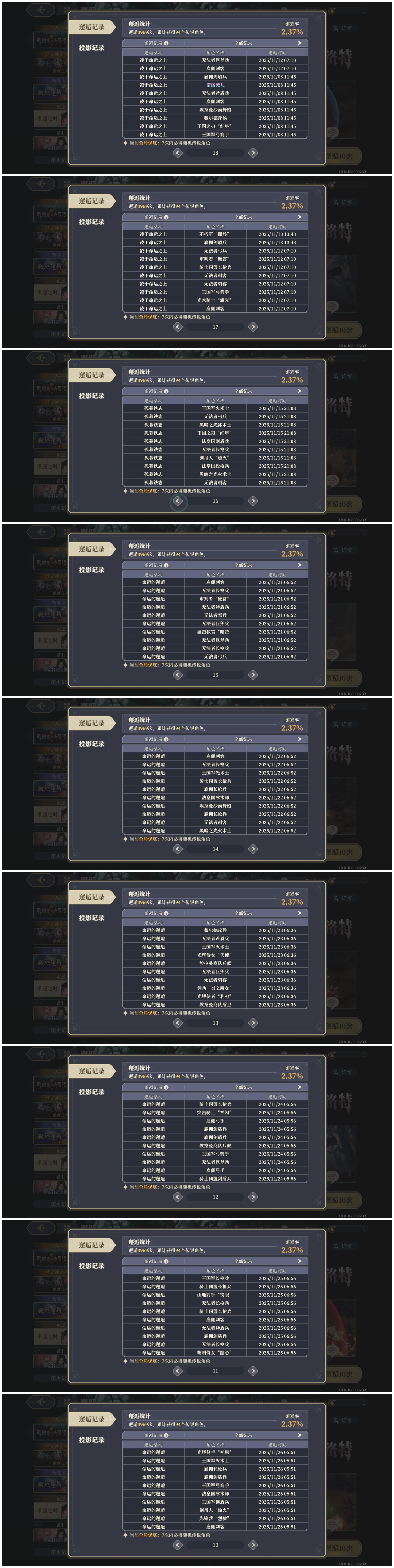 无语死了,这狗屎抽卡机制,我什么角色五星了就给我来什么角色,我就这么3个角色五星了还能抽到其中2个已经五星了的角色这垃圾抽卡机制是真特么的恶心人,重逢迟还一直歪,来个我想要的sp萨曼莎更会死一样,感觉官方就是看我玩这么久多没有冲过💰就故意来恶心我了