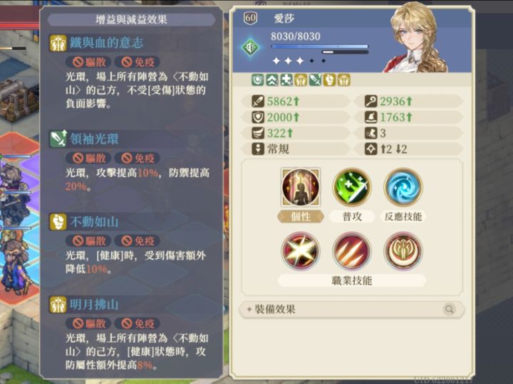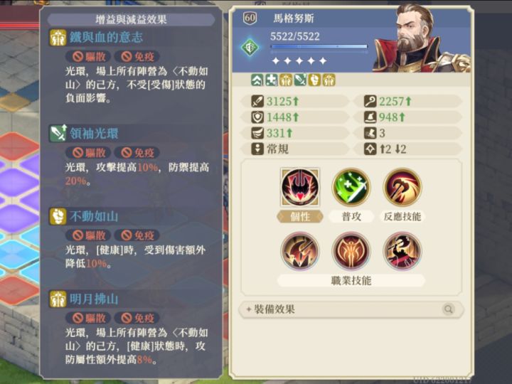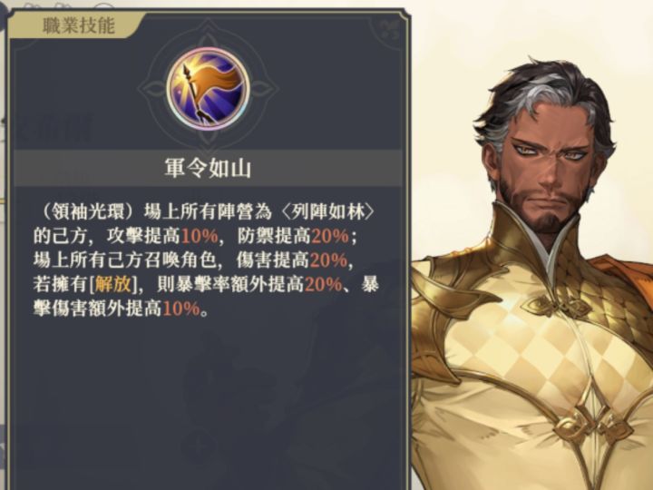 宰相的(军令如山)和奸商的(赏罚分明)都属“列阵如林”大光环,但却会因为站位不同出现不同词条,且覆盖另一个,这算是文案问题、归类问题还是bug呢?如果是共有的话会归类在同一词条内例如:1。山队的马格和爱莎(有同有异)文案相同的共有词条(领袖光环)攻击+10%、防御+20%(不动如山)[健康]额外减伤10文案不同的专属词条(铁与血的意志)马格专属(明月拂山)爱莎专属2。火队的sp