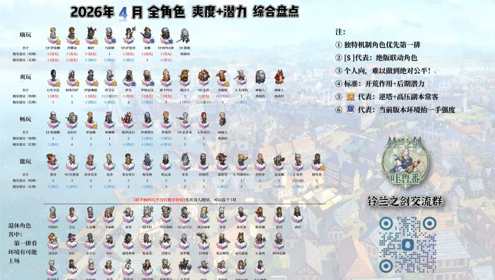 本帖更新时间【2026年4月1日】希望本帖能对你有所帮助本帖有较强的主观性,如果说的不对,希望您多包涵!重要说明1、个别角色异议较大,可以留言,根据情况下次会进行修正。本榜单每月会根据各个阶段的玩家汇总意见进行调整!2、如果有激烈意见,一定是您对!3、有不同意见,一定是您对! 注:①强力角色,用起来未必爽。②开局爽玩角色,中后期潜力未必高。③本榜单结合以上2点进行排