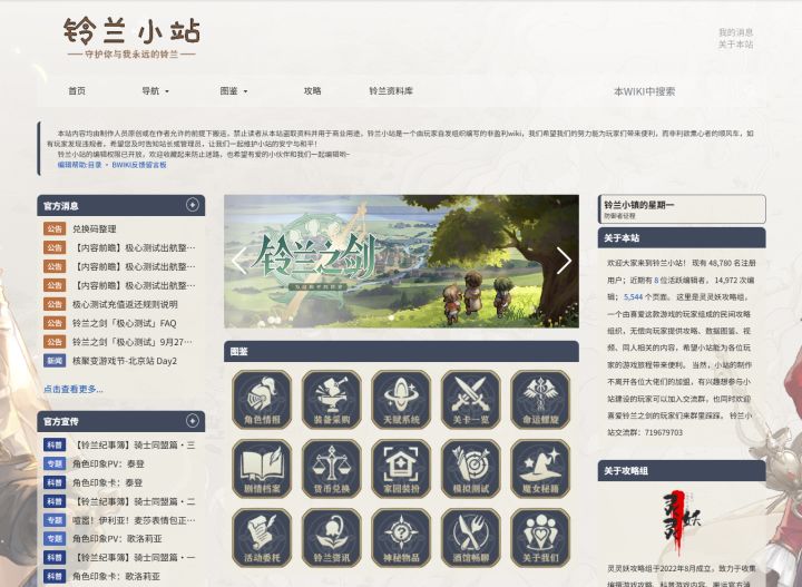 1. 国服BWIKI---铃兰小站适用范围:国服由国服玩家创建与运营的民间攻略站,可以非常方便地查看角色图鉴、伤害公式、刻印机制等重要游戏内容,是目前国服玩家最常用的Wiki之一。该站持续更新中。网址:2. 铃兰之剑PVE基础攻略适用范围:国服由 编写、“铃兰之剑-爱与和平”频道成员共同贡献与校对的一站式PVE攻略文档。全方位涵盖刻印、塔罗、天赋、角色解析、游戏基础原理等游戏内容,非常
