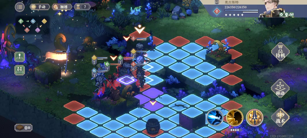 因为sp王女升星后有8层自由buff,所以可以一开局完整就吃到毁灭者的团队buff,90减伤情况下也能基本杀掉对面。先清理一队后,后面的压力就小很多。