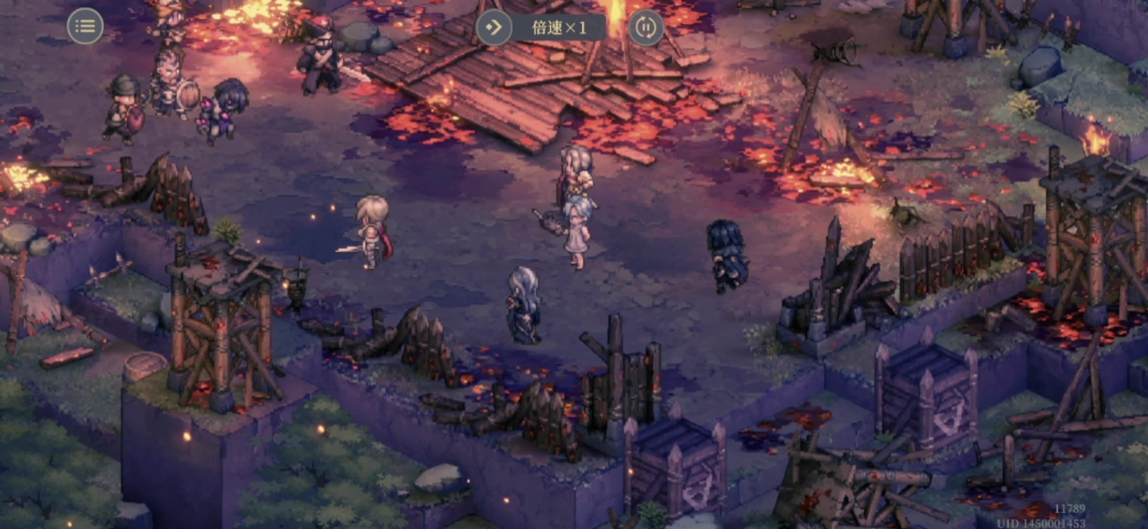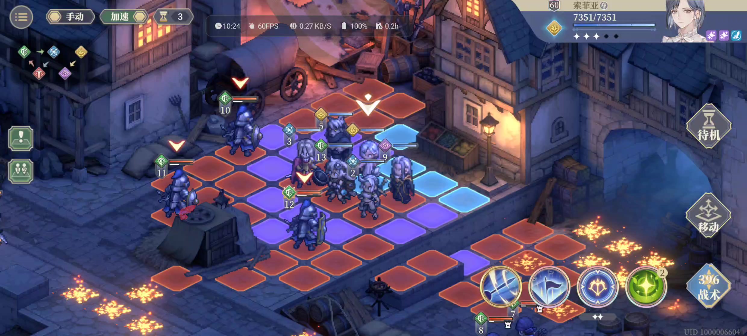 首先因为还在开荒,队伍整体练度还是不够,小姐头是三星的,塔子2星,其余都是1星,配置上二王子是刚需,因为绿职boss的警戒太厉害,二王子可以消警戒。 开局传送二王子进上路人堆开引入慢慢耗,然后王女跟进保二王子血线。其他四人直接开号角去all in下路暗职boss,解决掉后回头清一下杂,然后一起打剩下的绿职boss。