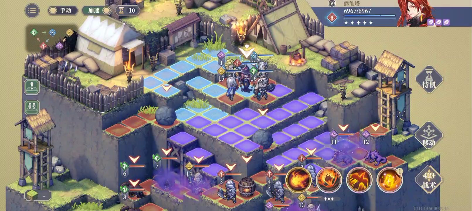 角色: 柯瓦雷:1.[名单]给到下方剑盾兵,然后给光卫士[潜能激发]。2.用强化后的[御风之火]攻击科尔上方两个突袭者 黛博拉·黑棘(螺旋中接纳获得,也可用乐土的黎明侍女替代 ):打爆最左边的红晶体吸引敌人并减益 薇尔德舞娘(3阶时需学习诡魅舞步):使用诡魅舞步与科尔互换位置,再行动时优先靠近队友依靠被动进行增益。 科尔(3阶时需学习突袭):1.互换位置后,优先布置陷阱防止敌人攻击,位移至视频处。