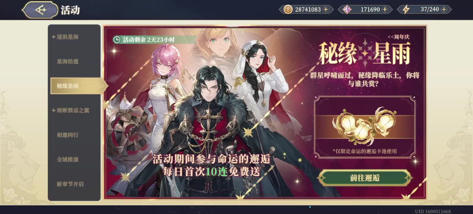 统一回复:你的角色是怎么来的?你参加了“邂逅免费送”活动还算“0抽”吗? *如果您对我的“答案”不满意,或完全不认可我的说法,麻烦您立刻停止浏览相关帖子,请勿进行任何点赞、回复等操作。 *猫之城要以和为贵,要讲猫德,不要搞窝里斗,谢谢朋友们! *本帖“0抽”指的是玩家在没有花费任何抽卡资源的情况下获得了游戏中的角色或道具。这种情况可能是通过游戏活动、登录奖励或其他免费途径获得的。 回归邀请码:KR