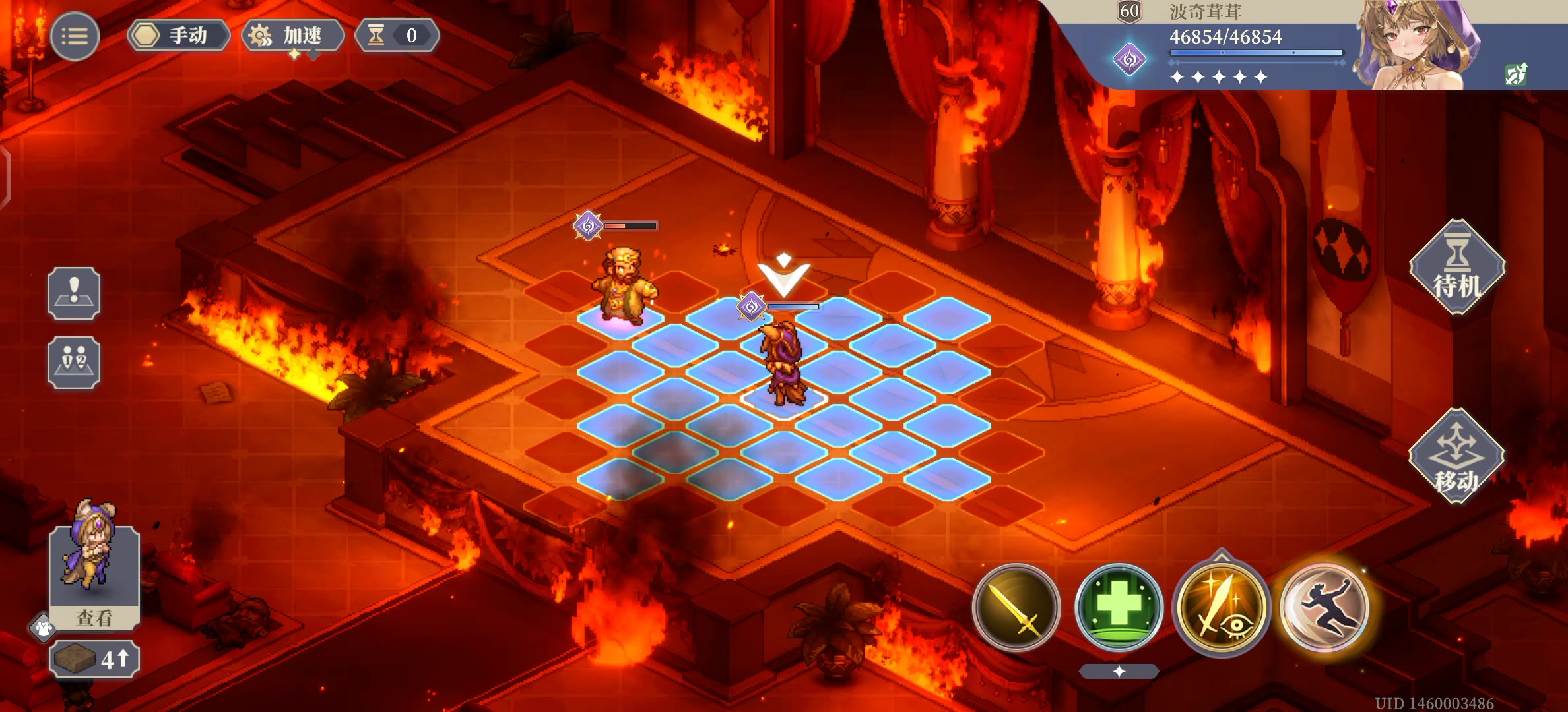 世界塔罗:没用主动技能并[待机]时,全冷却-1。 亲卫翼护:任意己方在羽刃上待机后,可再移动。 二者结合,就可以让带世界塔罗的己方,不使用主动技能,逐个踩羽刃来减团队技能的cd,只需踩2个羽刃,即可在行动结束时将团队技能冷却减至0。也就是说,牺牲一次行动的输出机会,换取一次额外使用团队技能的机会。 上场伊瑟琳德还有一些好处: 1. 无尽罗网光环提供增伤与穿透增伤; 2. 无尽罗网光环提供生命汲取,